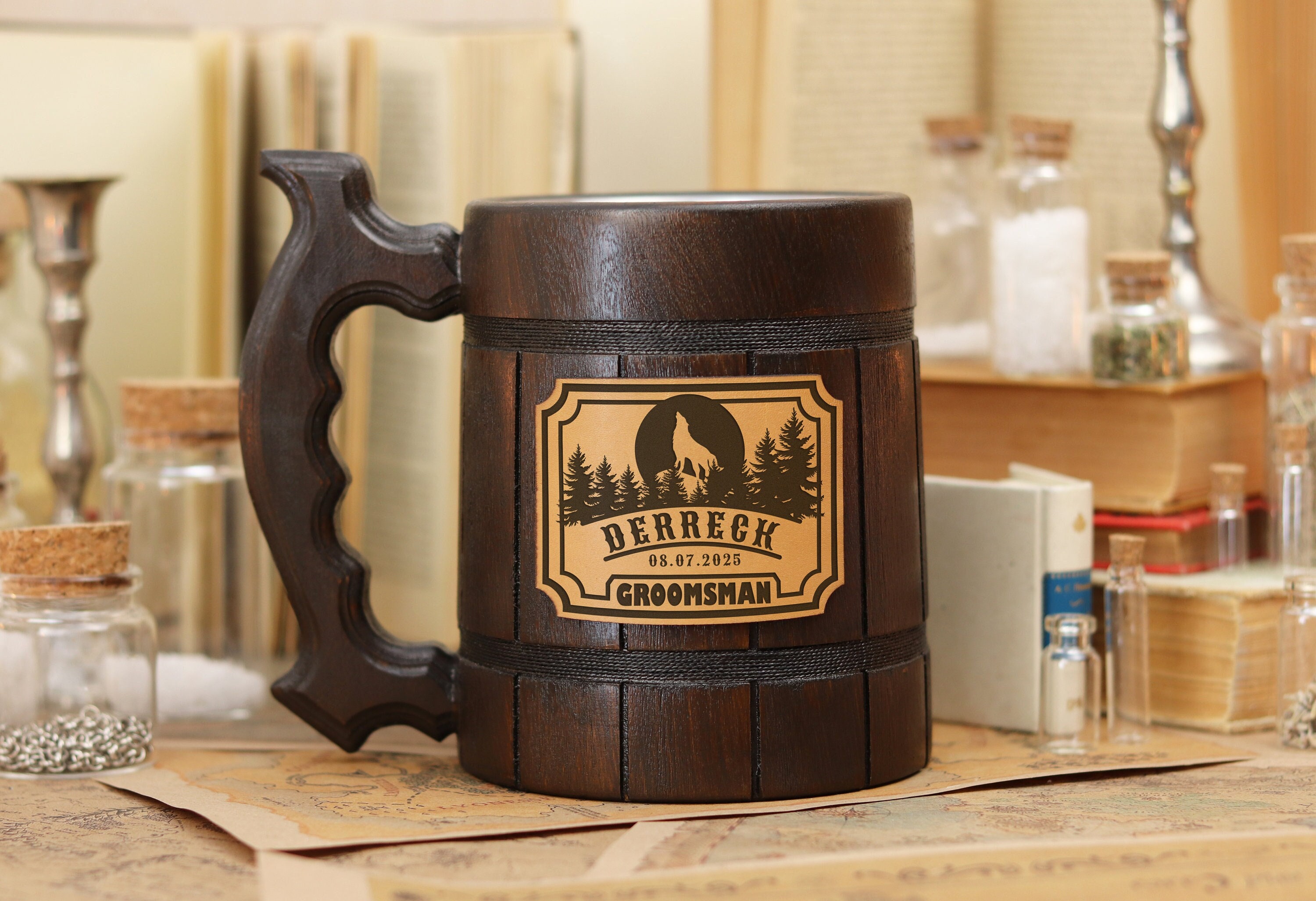 "GROOMSMEN GIFTS Personalized Wooden Beer Mug Best Man Gift Ideas Groomsmen Proposal Gift from ...