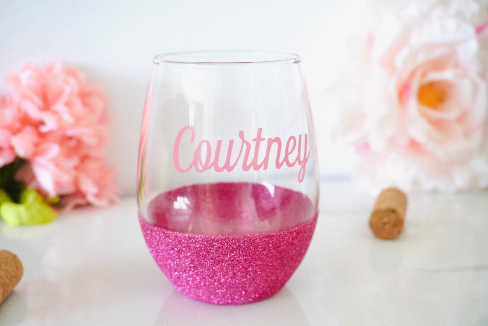 "Enjoy your favorite wine (or your other favorite drinks) in this personalized glitter wine gla...