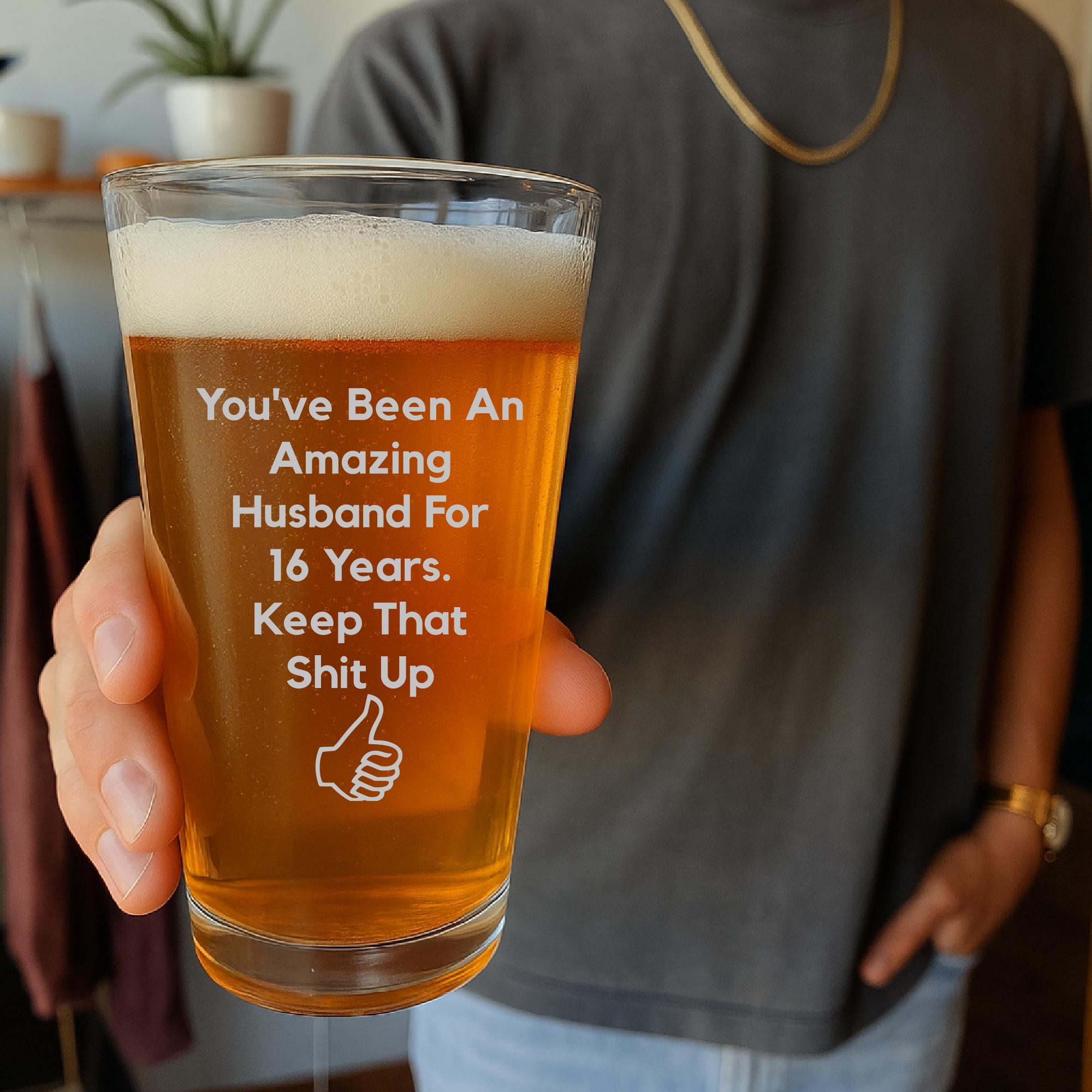 Show your husband how awesome he is with this hilariously funny and unique beer glass that is sure t...