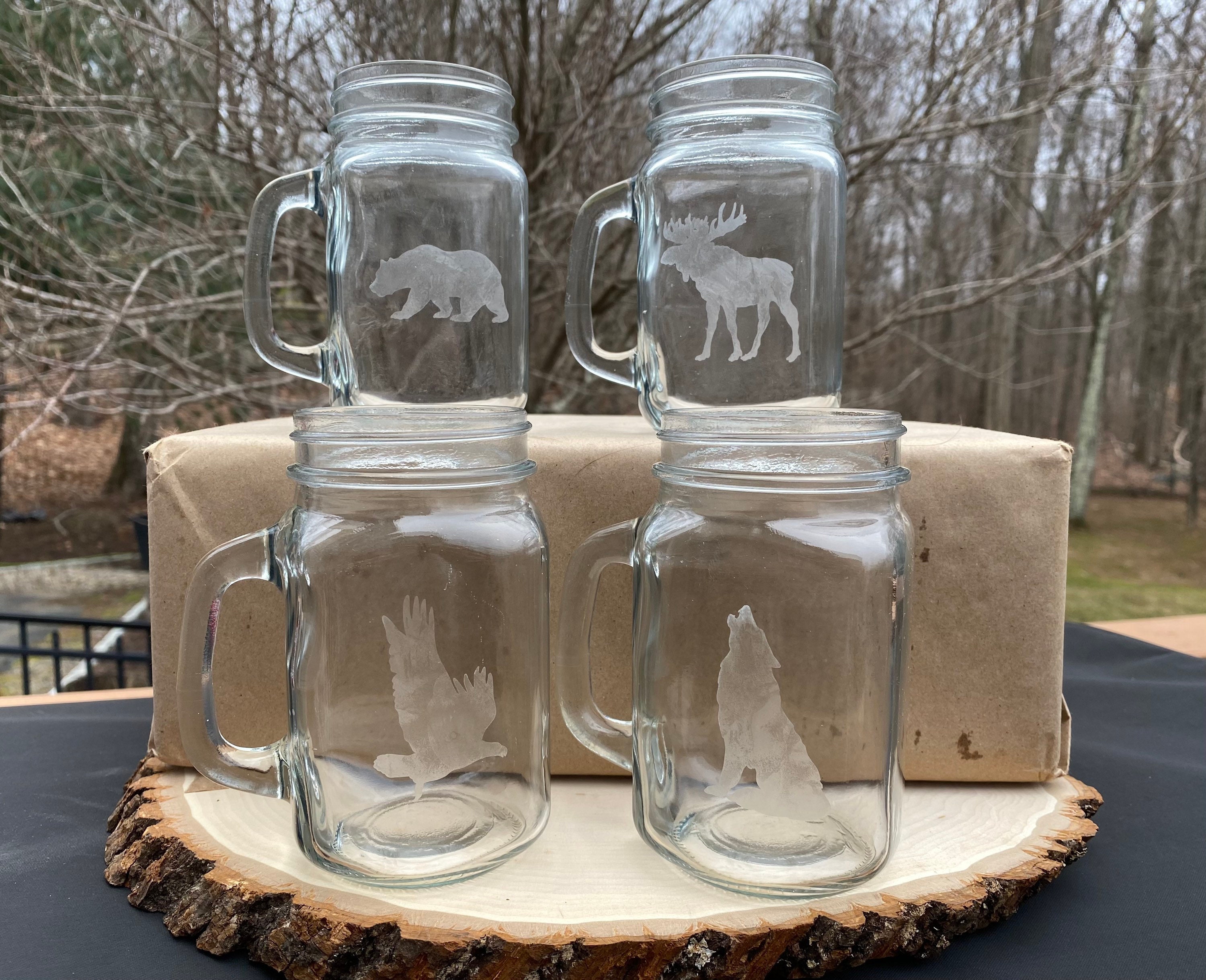 Woodland Animals Mason Jar Glasses, Forest Animals Mason Jars, Animal Silhouette Mason Jar Glasses, ...
