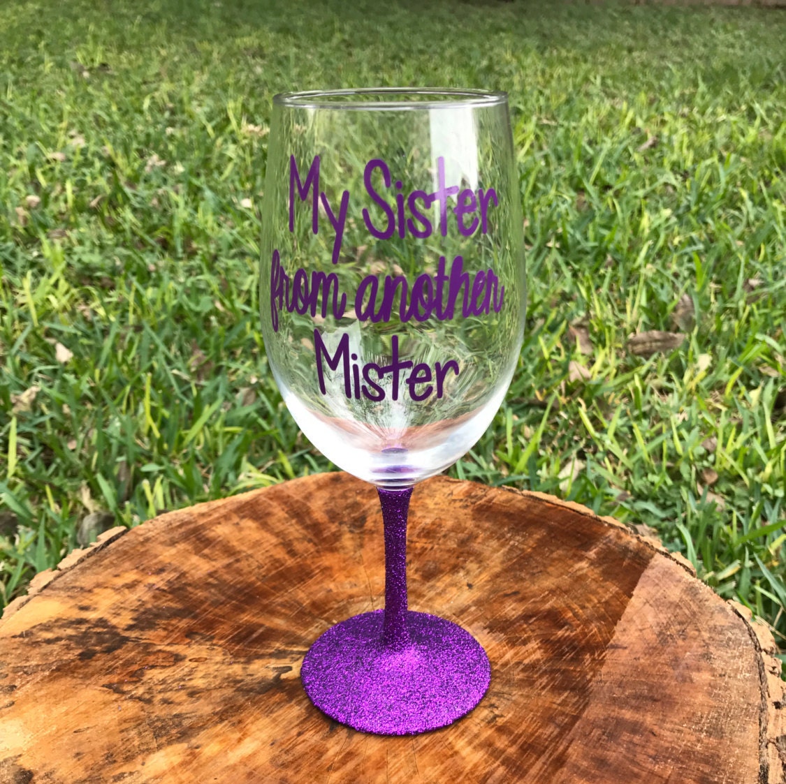 Sister from Another Mister Glitter Wine Glass Gift for Best Friend ...