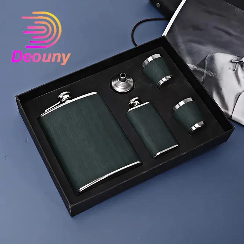 DEOUNY 80Z and 20Z 2 flasks Portable Flagon Hip Flask set with cups...