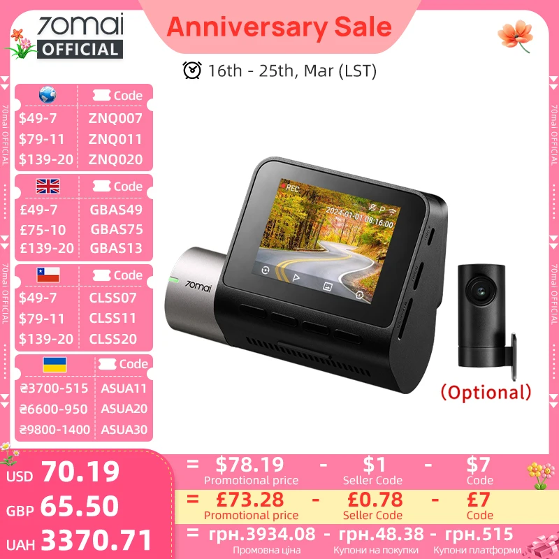 Global Version New 70mai Dash Cam A510 1944P 3K Image HDR GPS ADAS ...