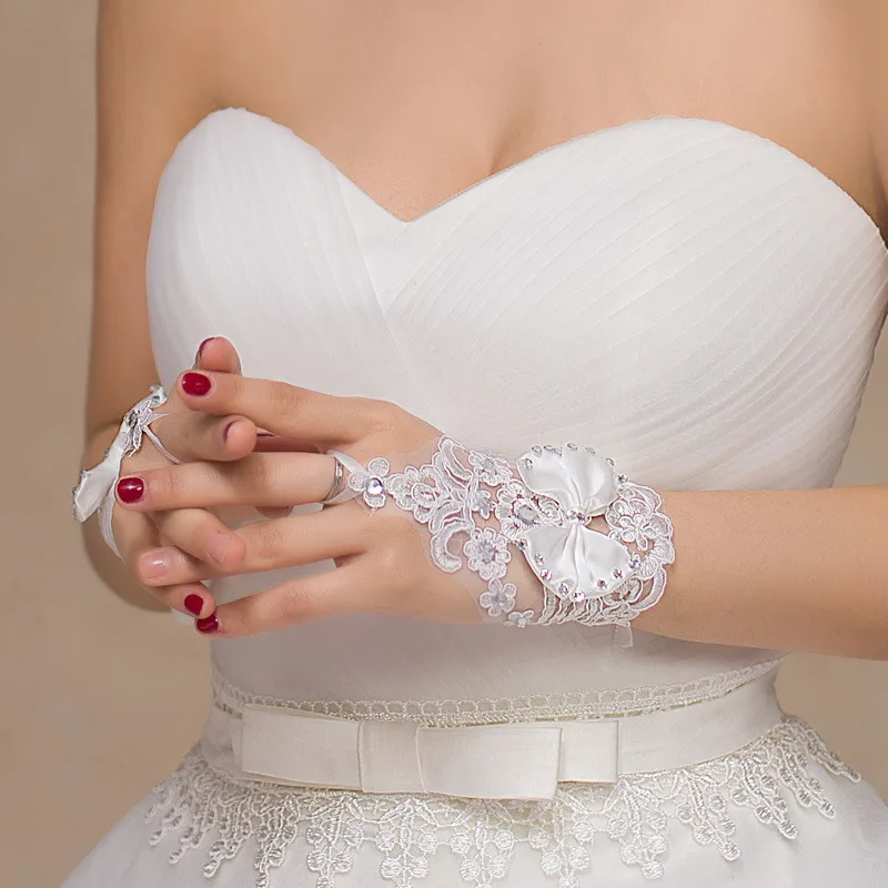 2019 Fashion Beauty Girl Red White Fingerless Wedding Gloves Lace Beaded For Bridal Wedding Accessor...