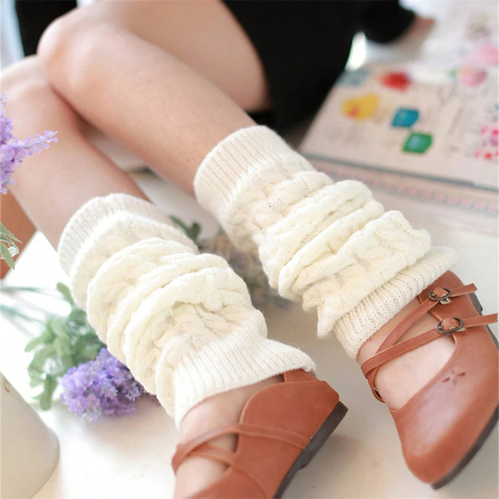 New JK Lolita Y2k Solid Color Leg Warmers Women Hollowed Out Foot Heel Warm Knitted Knee High Socks ...