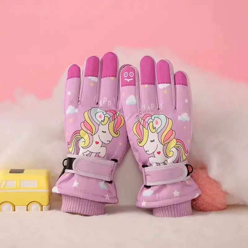 Kids Ski Gloves Waterproof Children Outdoor Gloves Cartoon Print Cy...