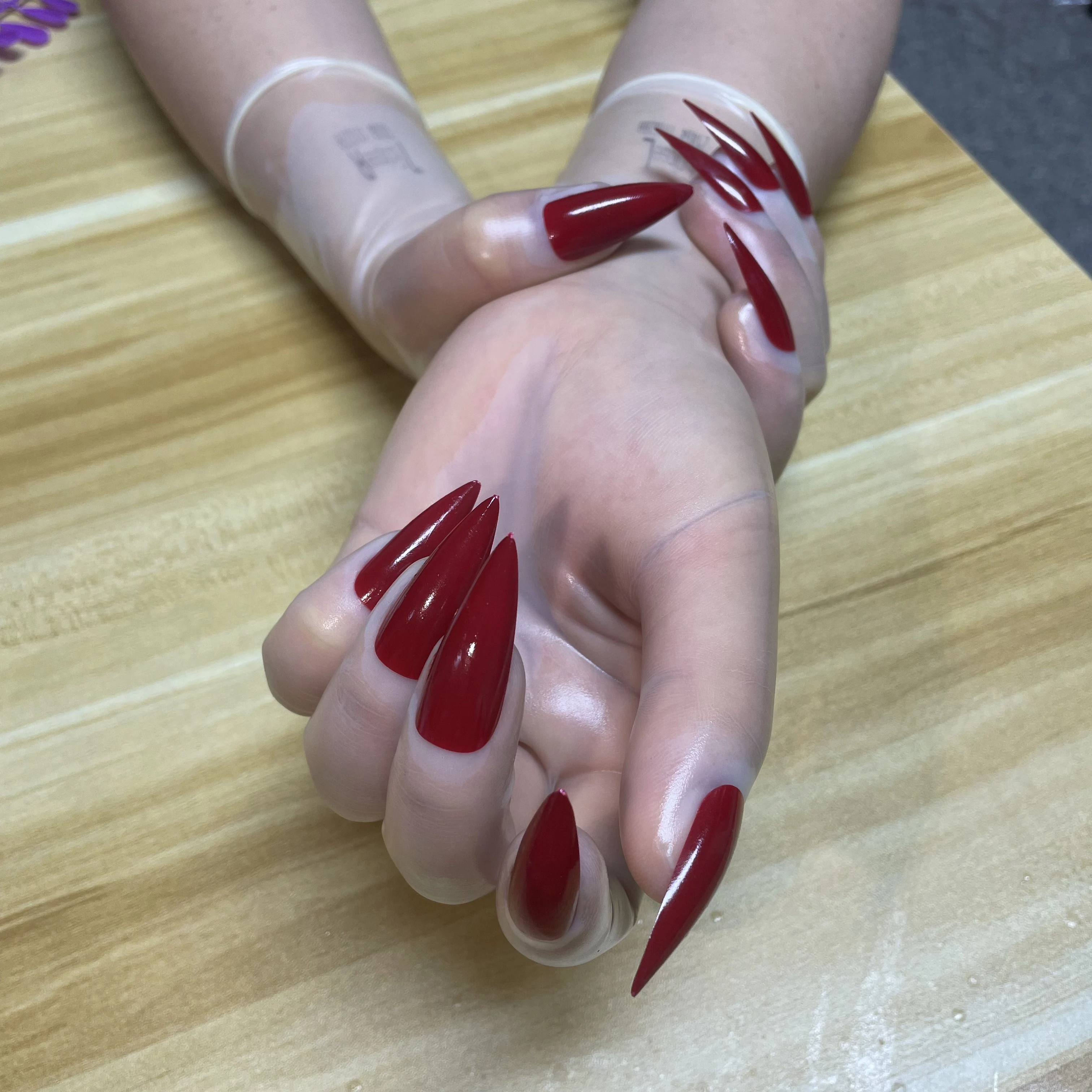 Kigurumi Malaysia latex material zentai 1 pair of medium to long transparent latex gloves with nails...