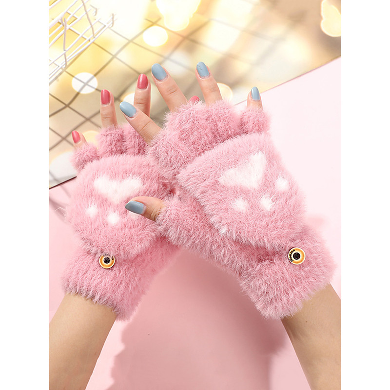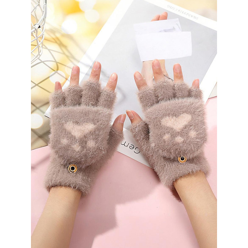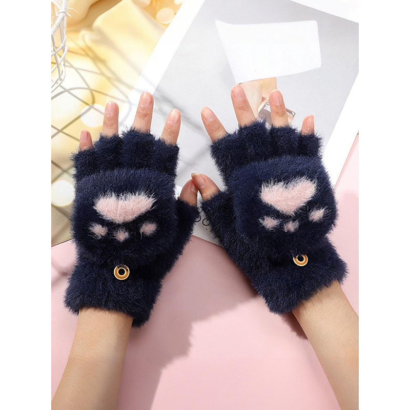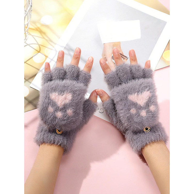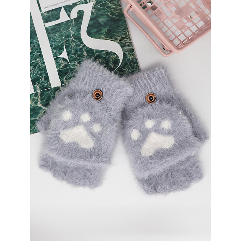 Women's Cat Paw Fuzzy Knit Fingerless Gloves – Soft Plush Fab...