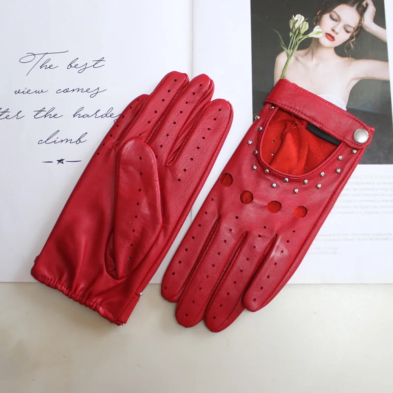 New Women's Sheepskin Gloves Thin Unlined Rivet Style Colored Driving Leather Gloves