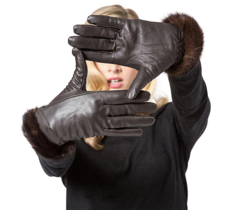 Women's Leather Gloves w/ Mink Fur Cuffs-Cashmere Lining-Gloves-Dri...