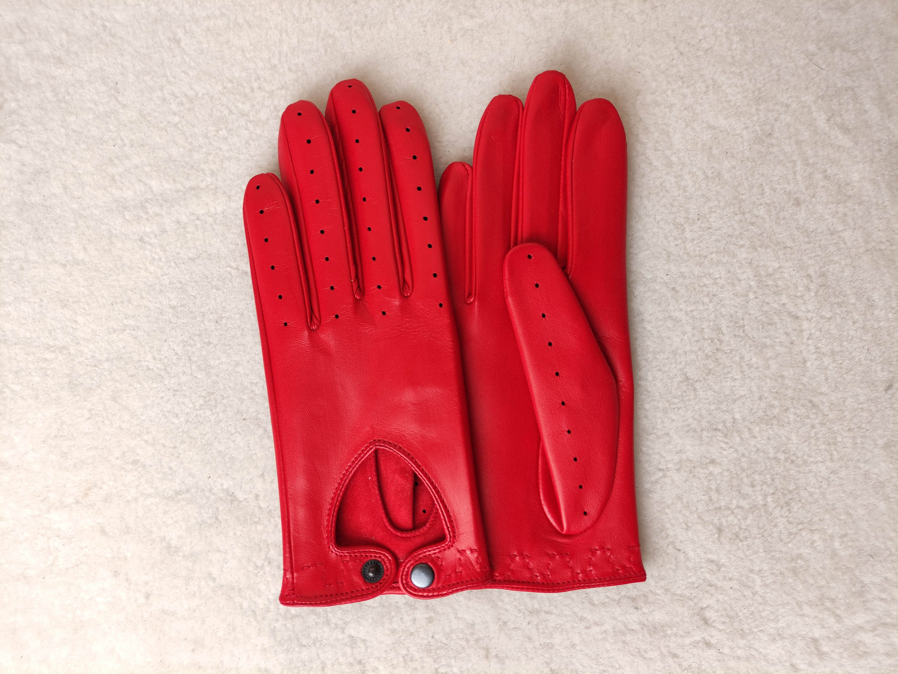Red Leather Driving Gloves Women Full Finger, Vintage Button Ladies...