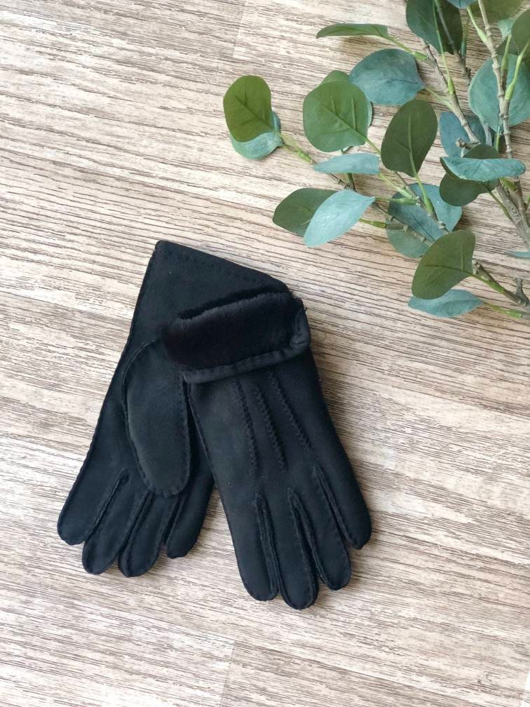 Mens Sheepskin Gloves /Winter Gloves/ Black Gloves/ Mens Gloves/ Sh...