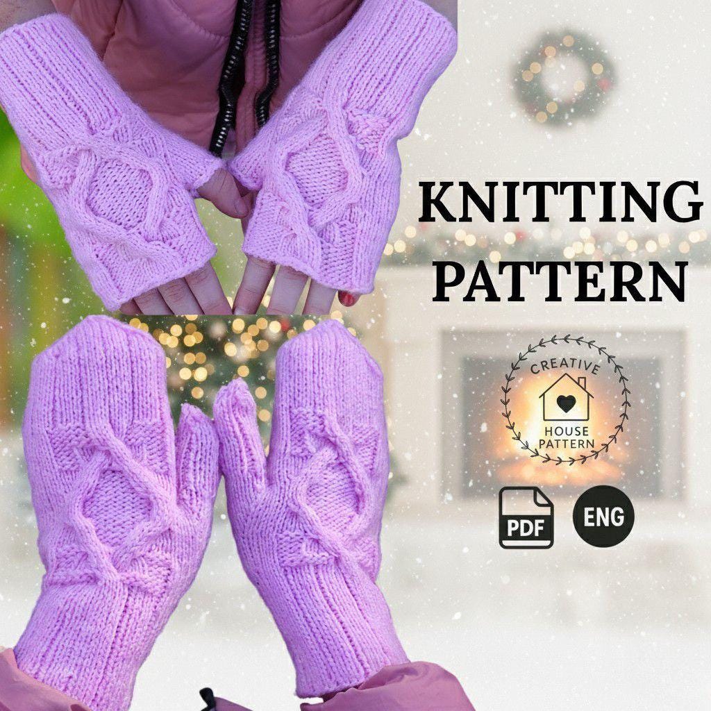 Cable Knit Mittens & Fingerless Gloves Knitting Pattern English...