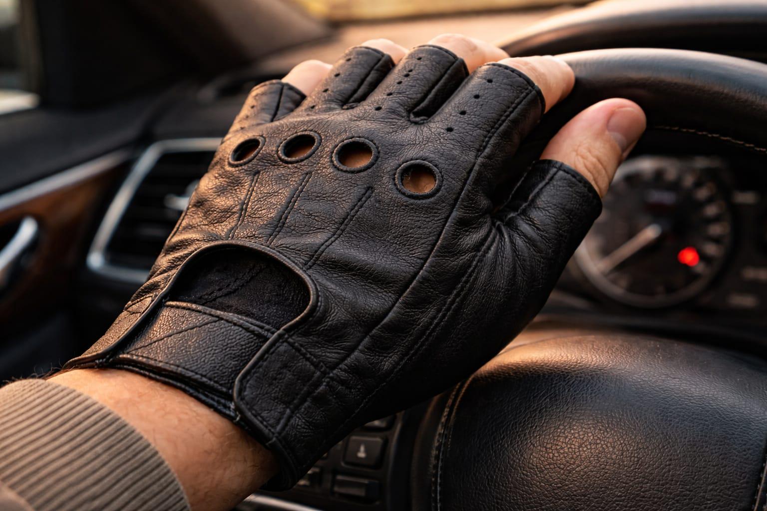 Fingerless car driving leather gloves, driving gloves, cycling glov...