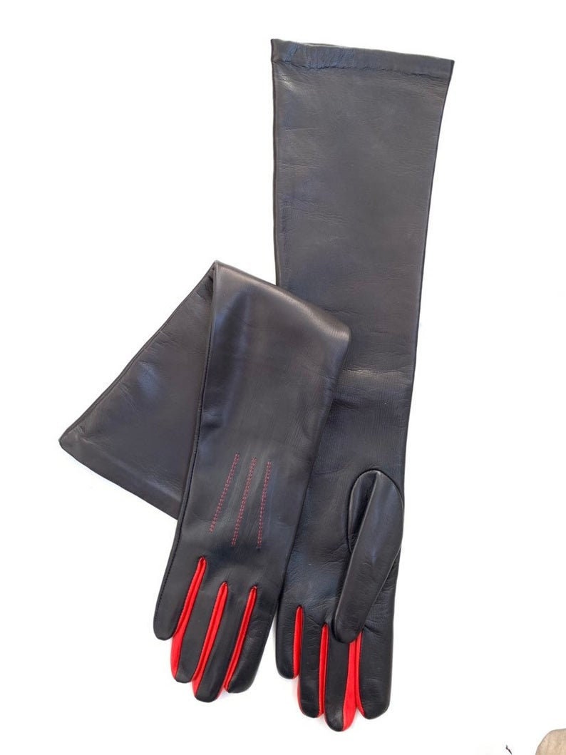 Long leather gloves for women/ Opera gloves/ Black and Red gloves/ ...