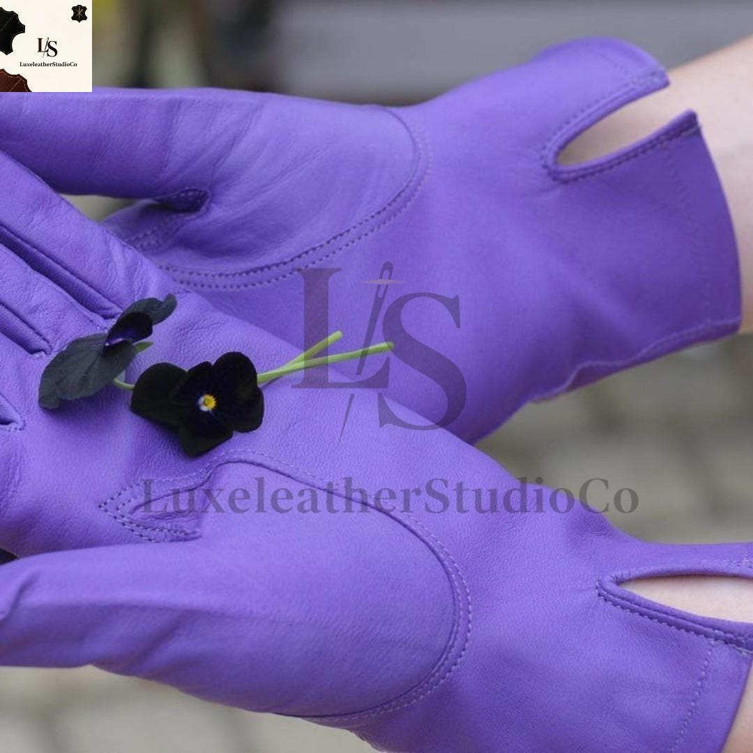 Women Leather Gloves, Purple Leather Driving Gloves Women, Ladies D...