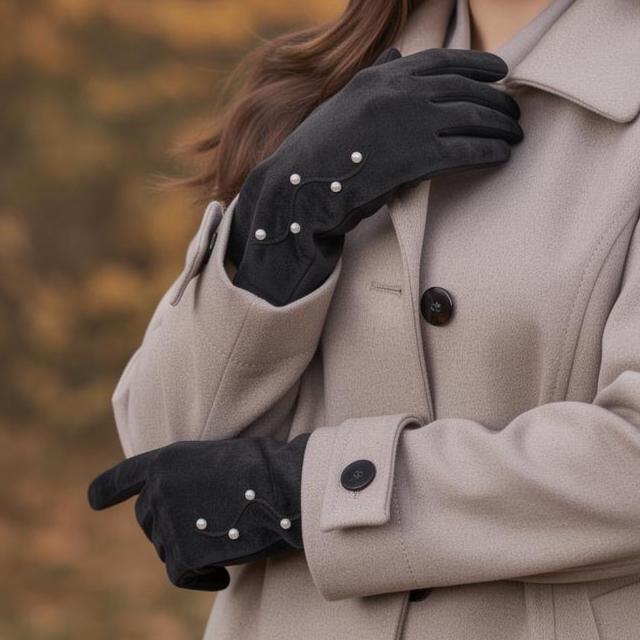 Fleece Button Pearl Gloves Ladies Multi Colour Gloves Touch Screen ...