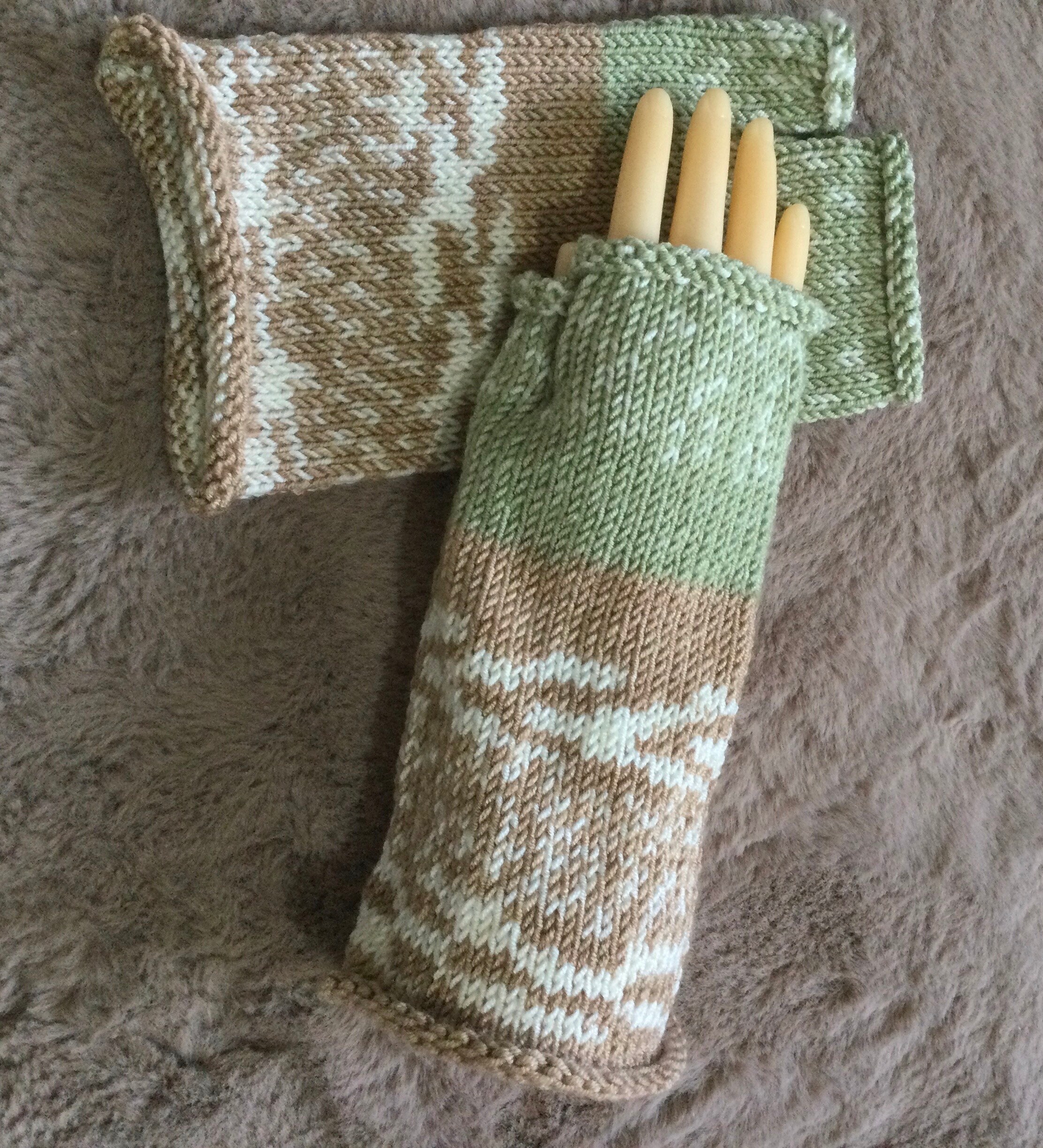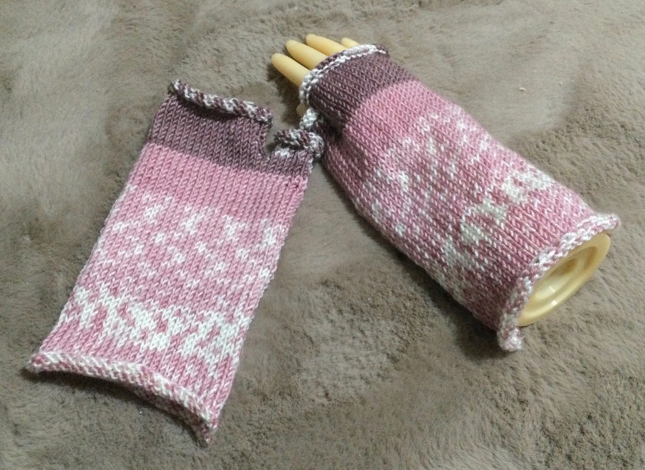 Handmade to my own pattern these wonderful fair isle patterned fingerless gloves. this wool is fanta...