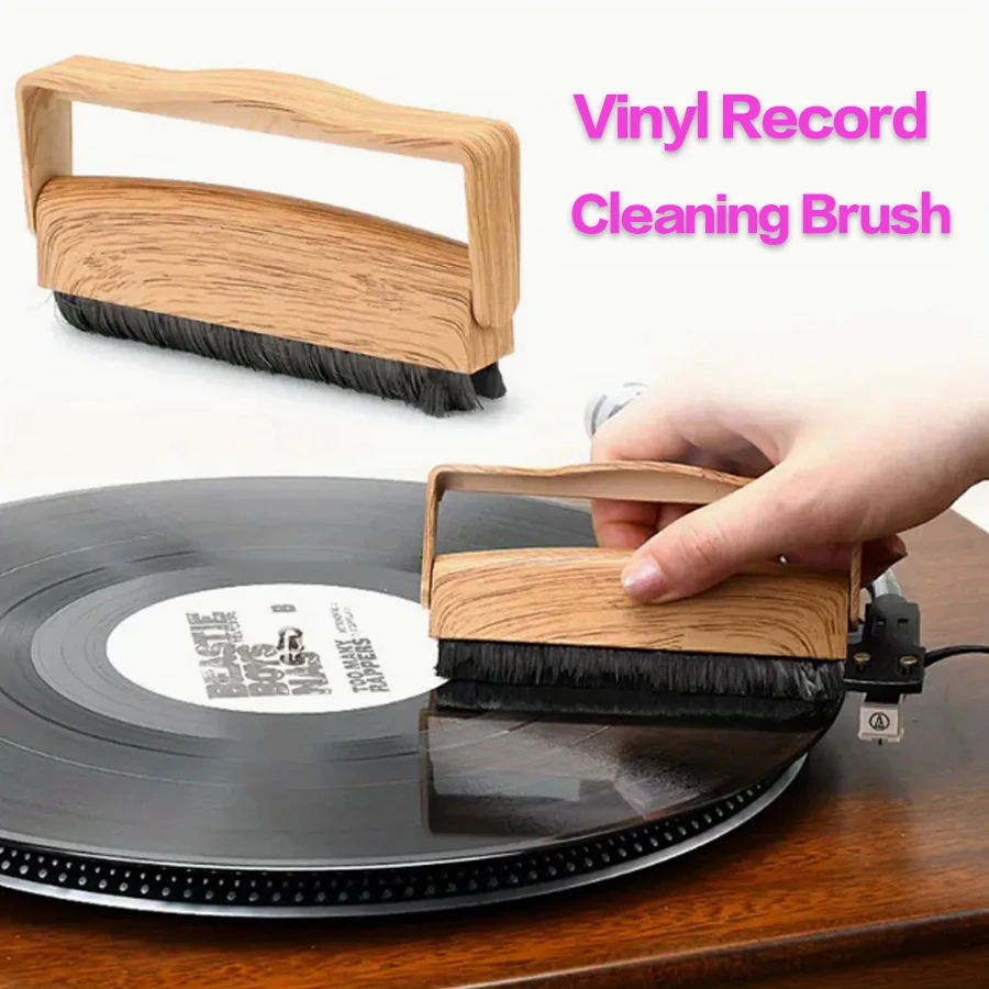 1pc vinyl record cleaning tool, PP material, with wood grain handle - suitable for turntable and LP ...