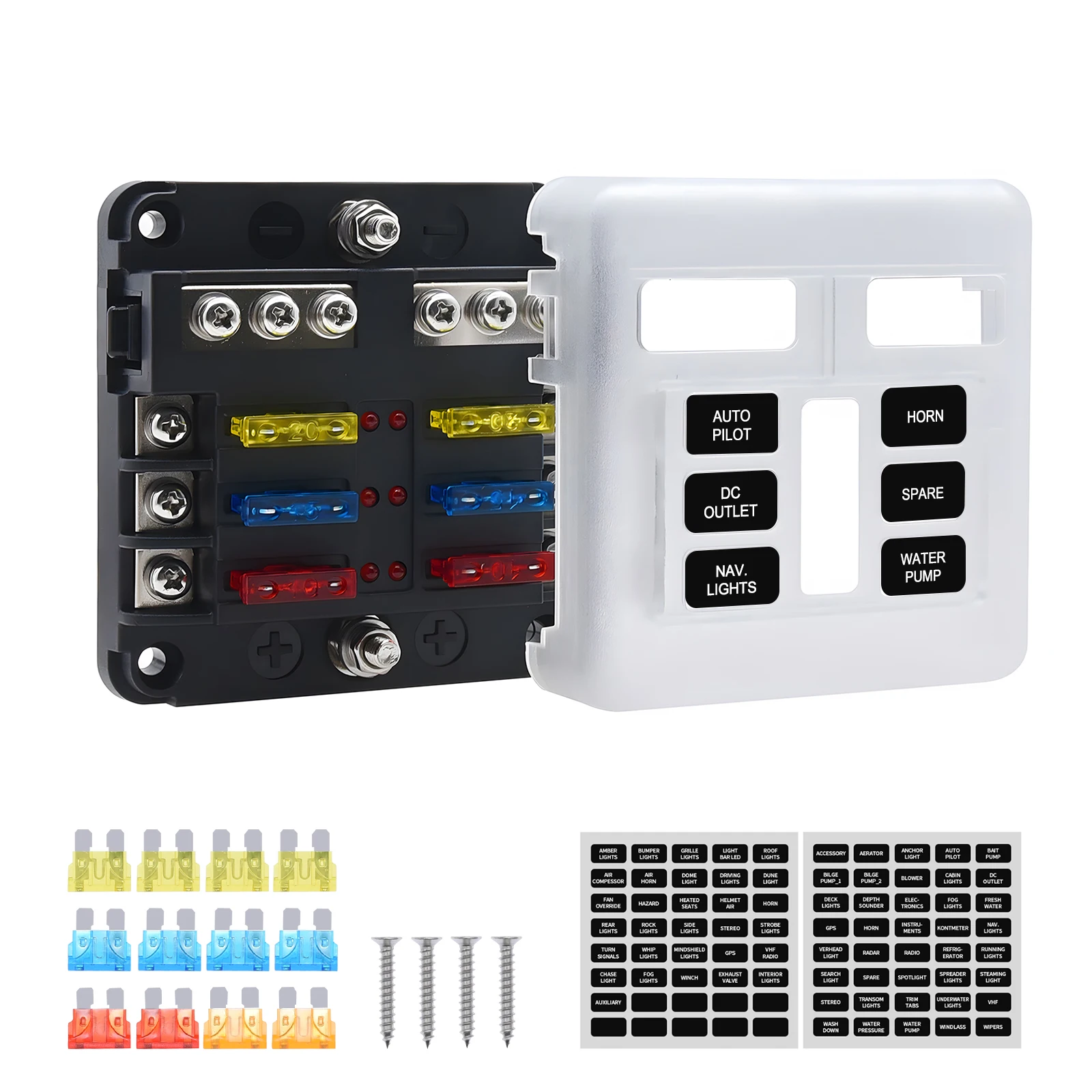 Car Boat Fuse Box Holder With 6 Ways Blade Fuse Holder Block Warnin...