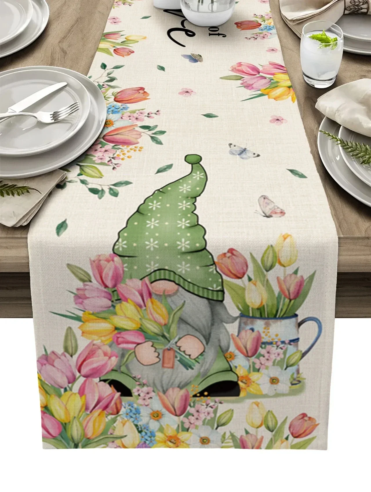 Spring Tulip Gnome Table Runners Holiday Party Decor Farmhouse Kitchen Dining Table Runners Easter D...