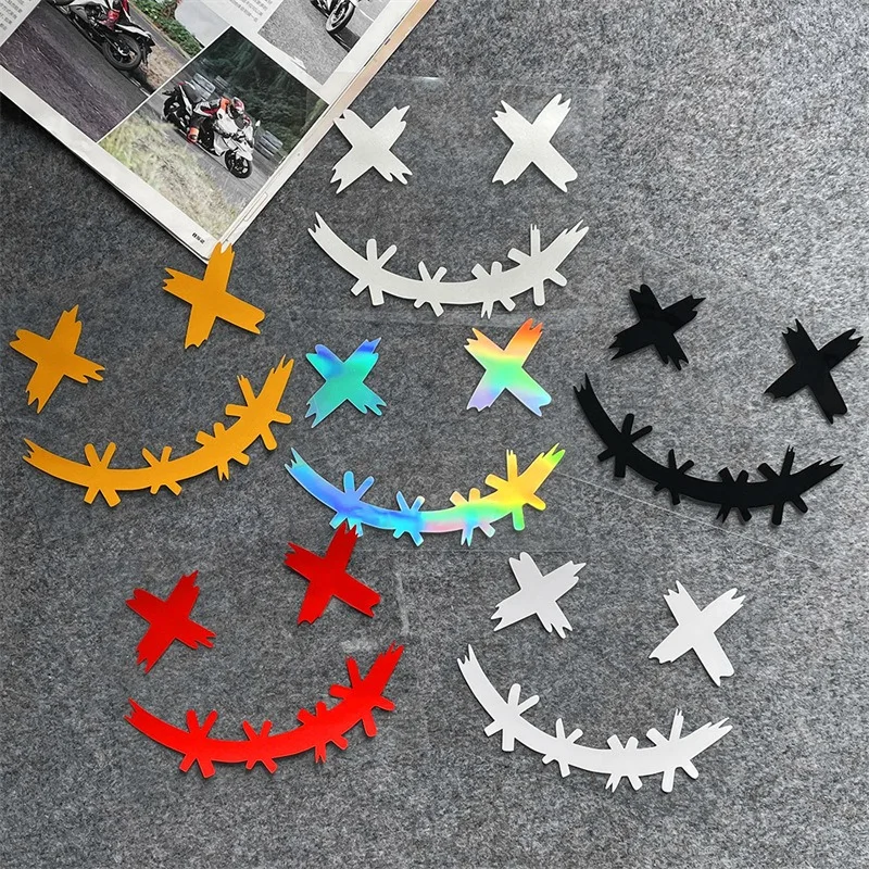 Motorcycle Stickers Car Reflective Waterproof Smile Face Helmet Decal Motocross Auto Rear Window Per...