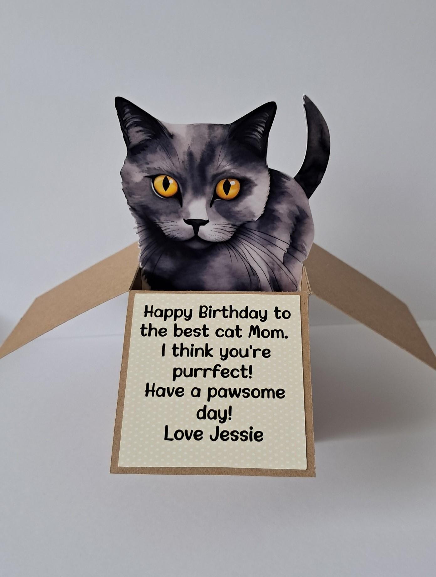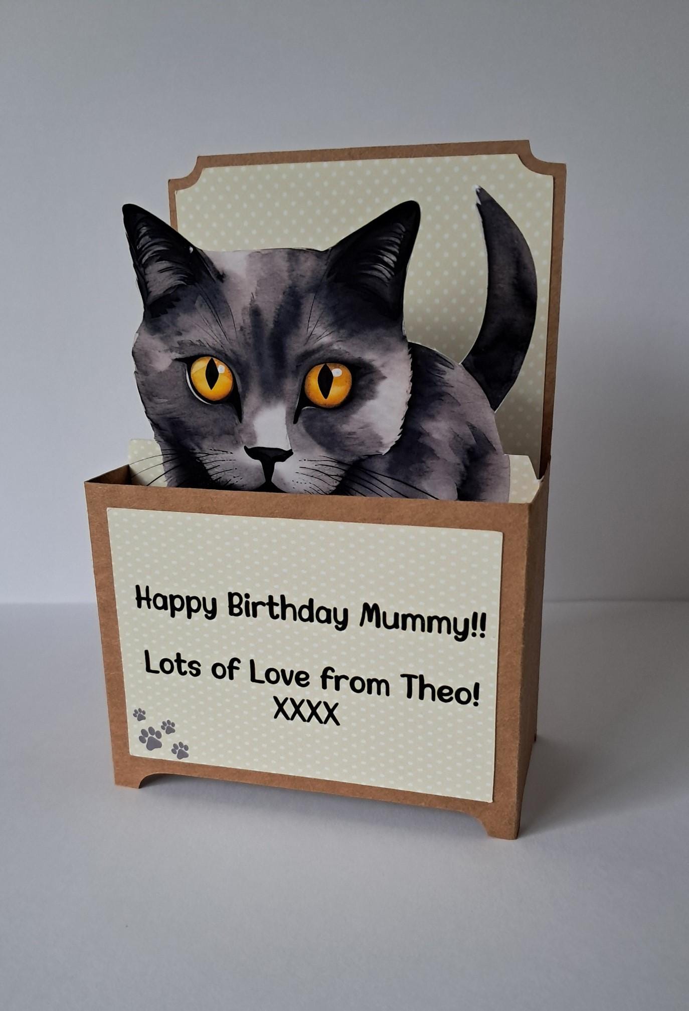 Personalised Cat Card. Handmade Unique 3D Birthday Cat Card. The Pa...