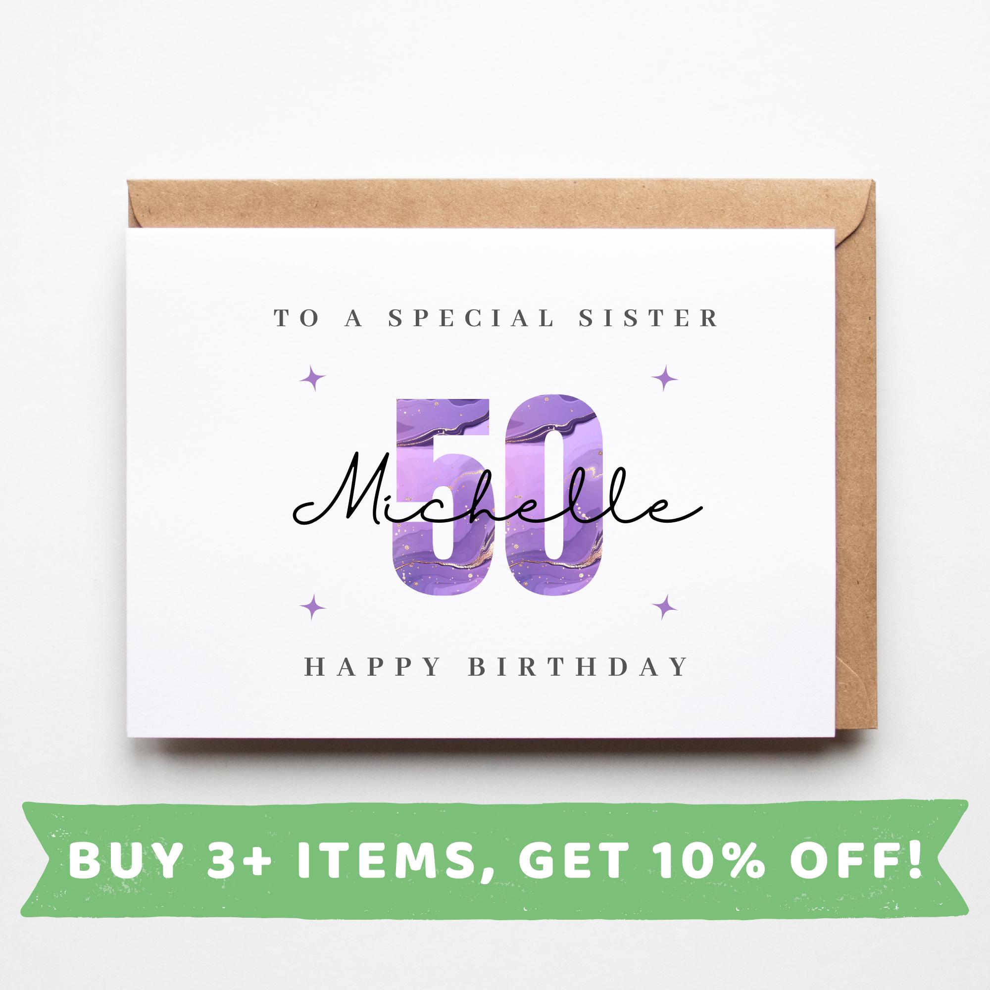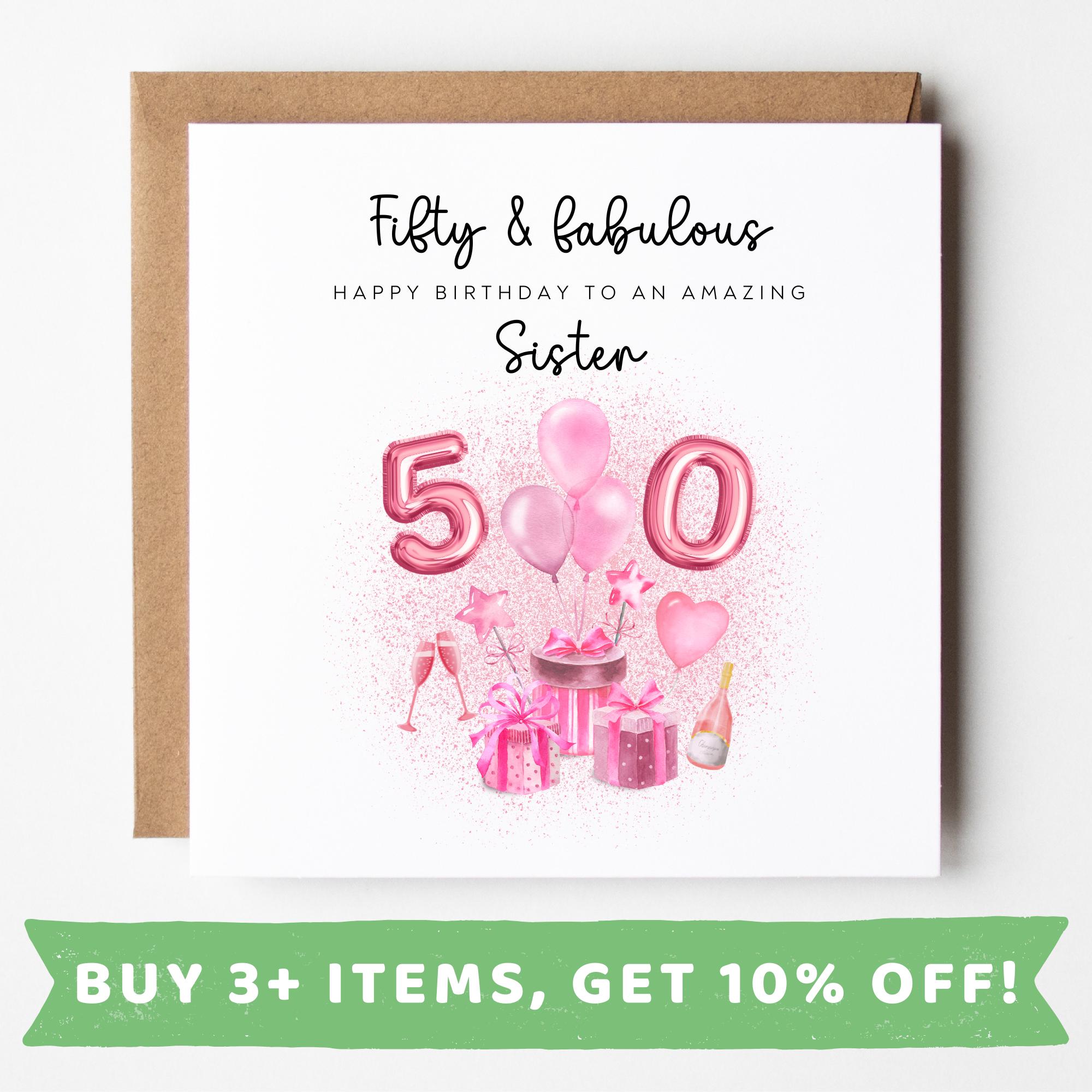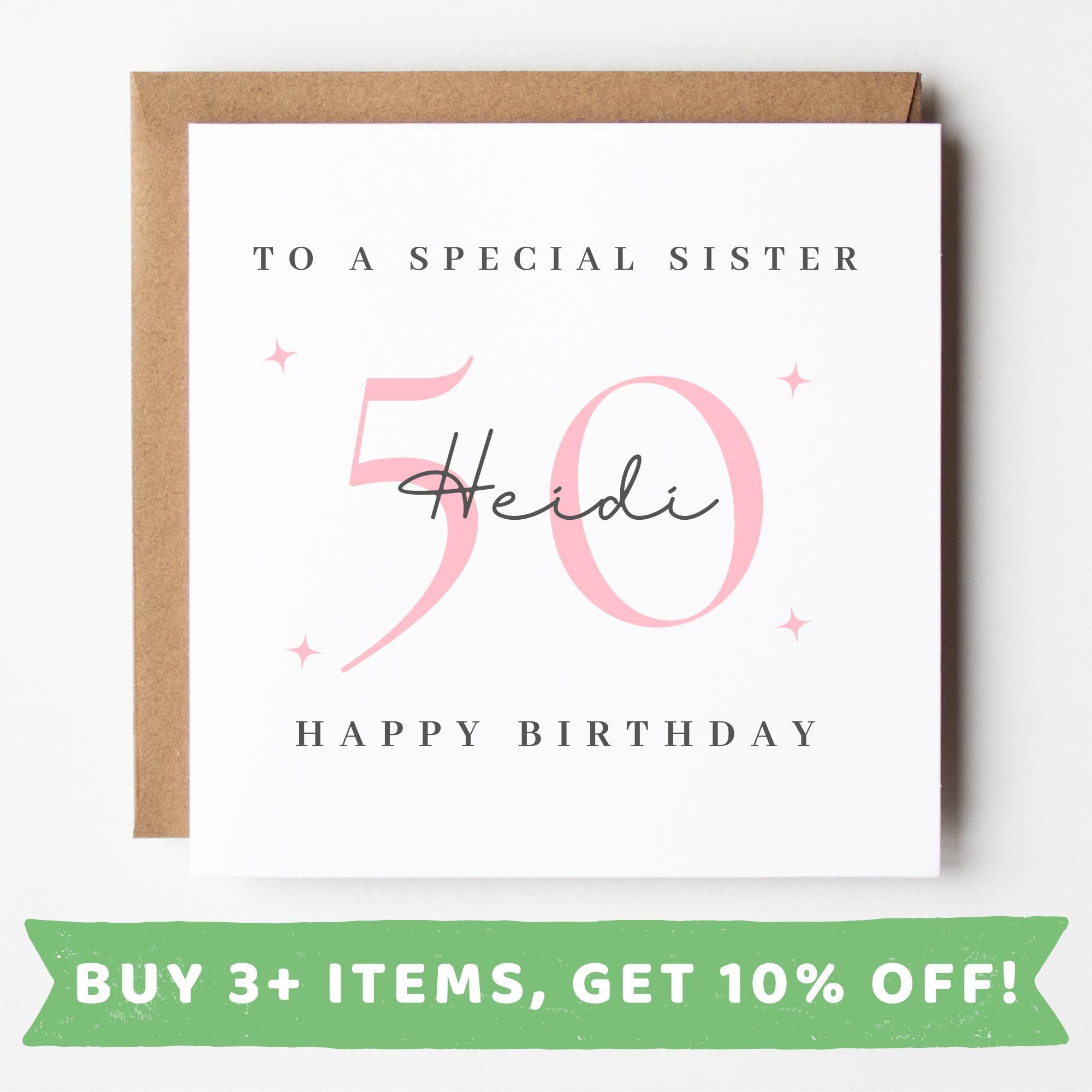 50th Birthday Gift Sister, 50th Birthday Card For Women, Personalis...