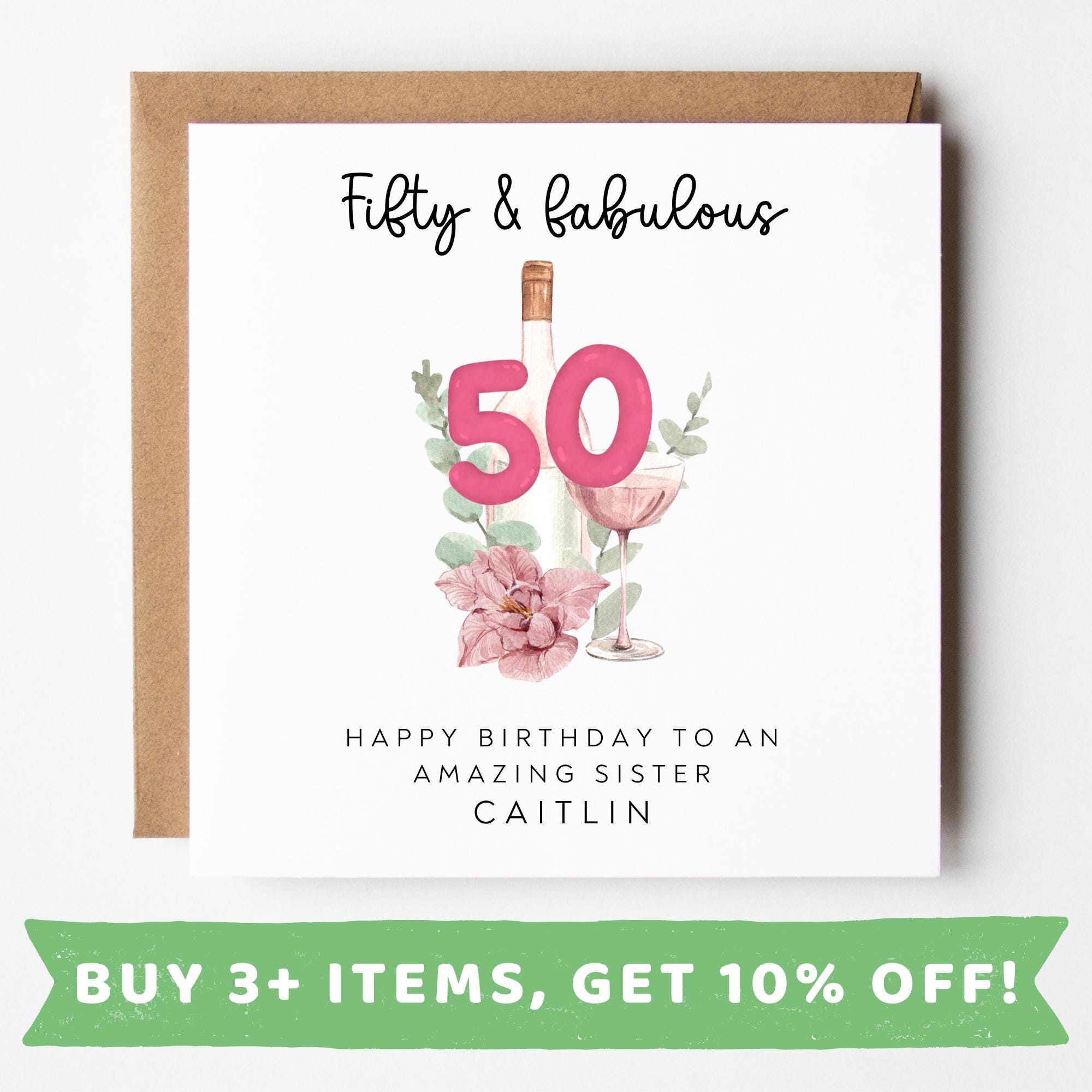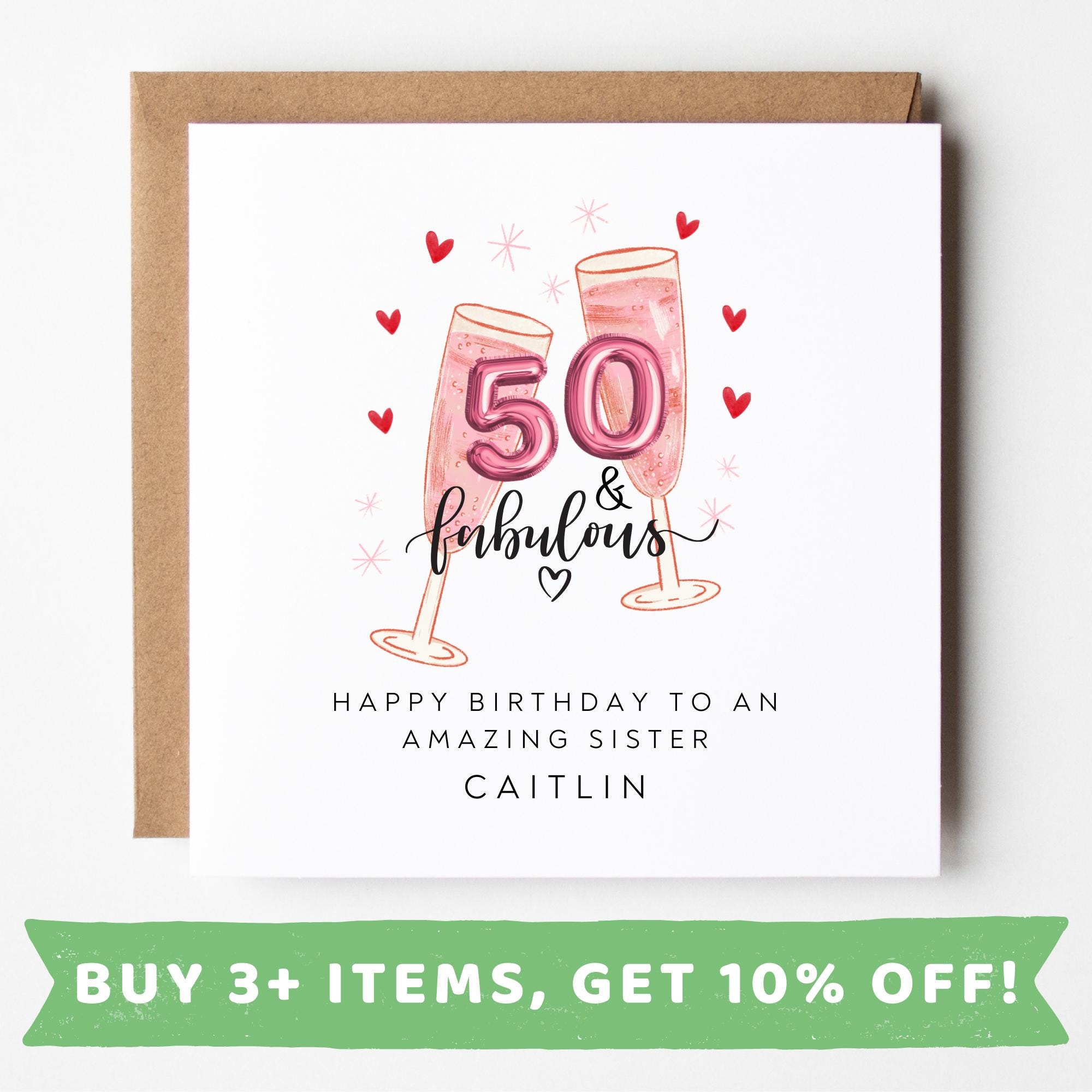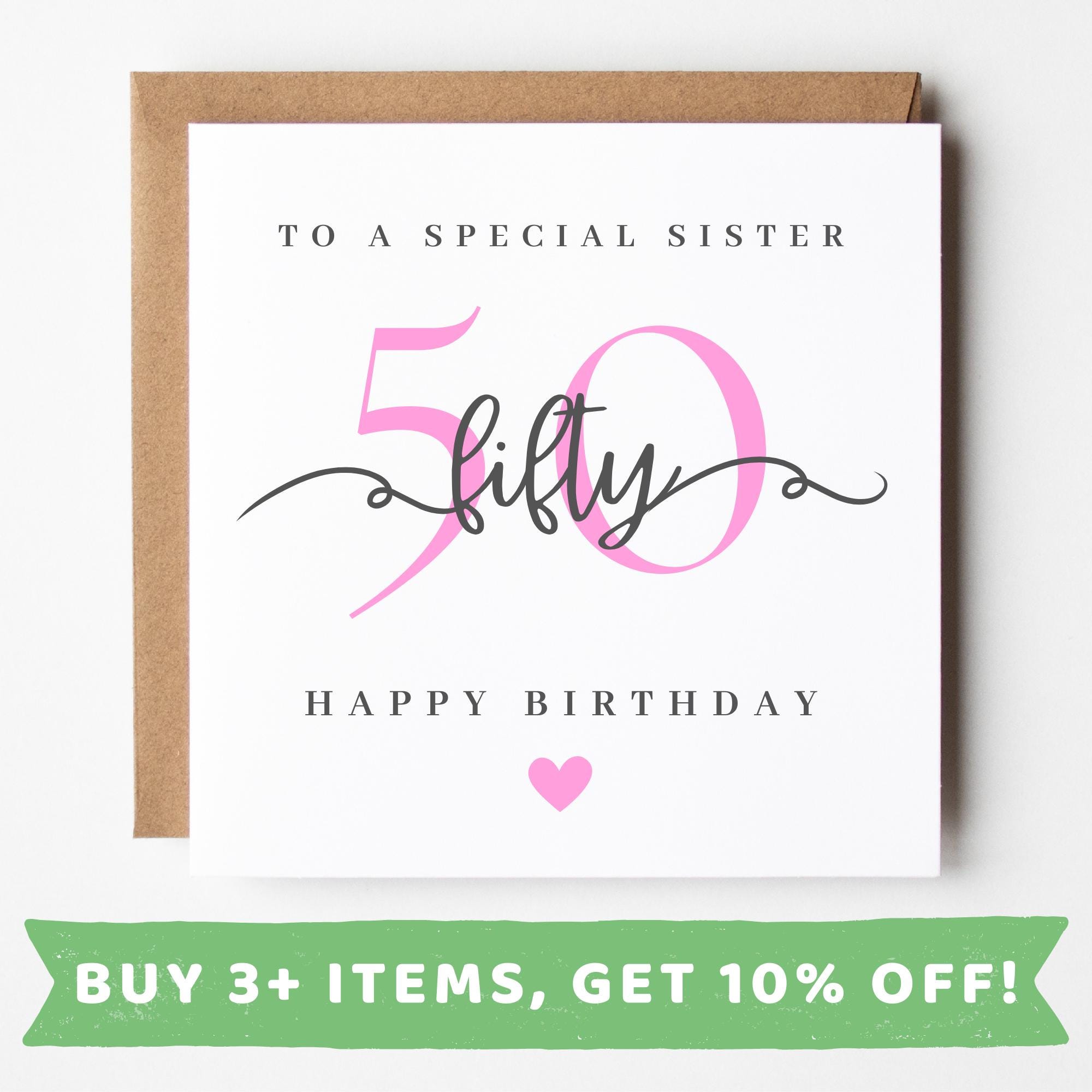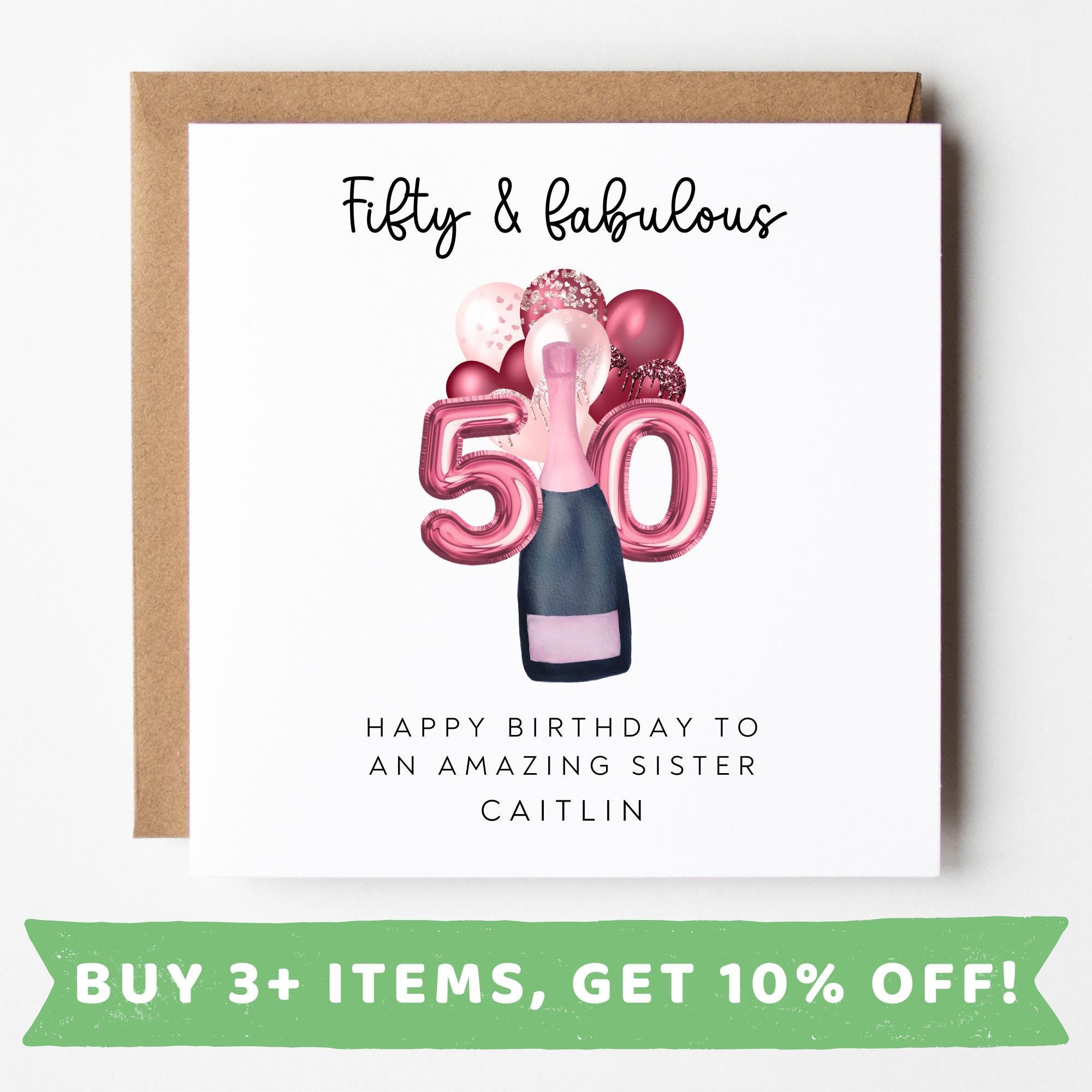 50th Birthday Gift Sister, 50th Birthday Card For Women, Personalis...