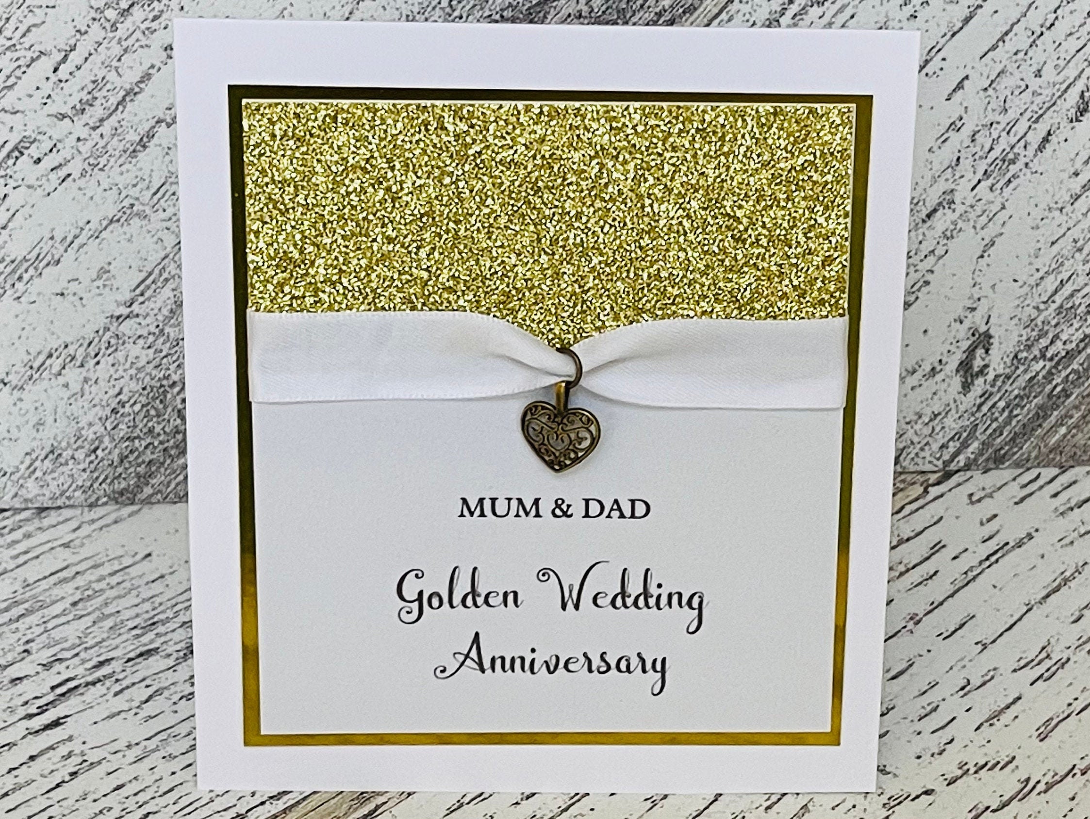 "Golden Wedding Anniversary Card, Personalised Handmade Golden Wedding Anniversary Card, 50th W...