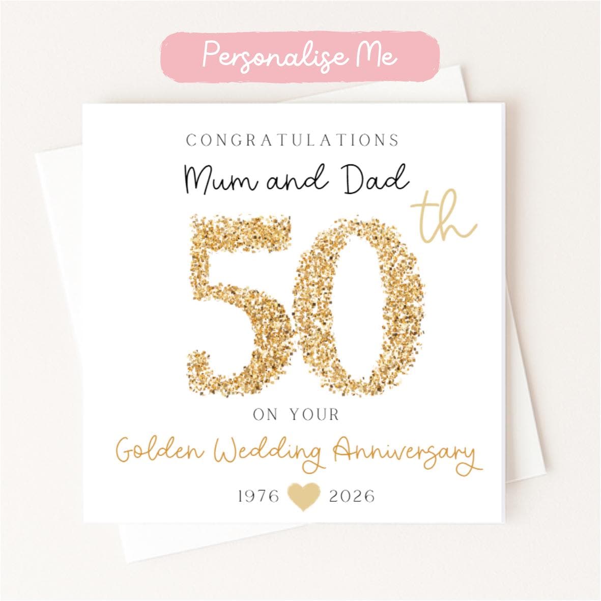 Personalised 50th Anniversary Card - Gold Wedding Anniversary Card ...