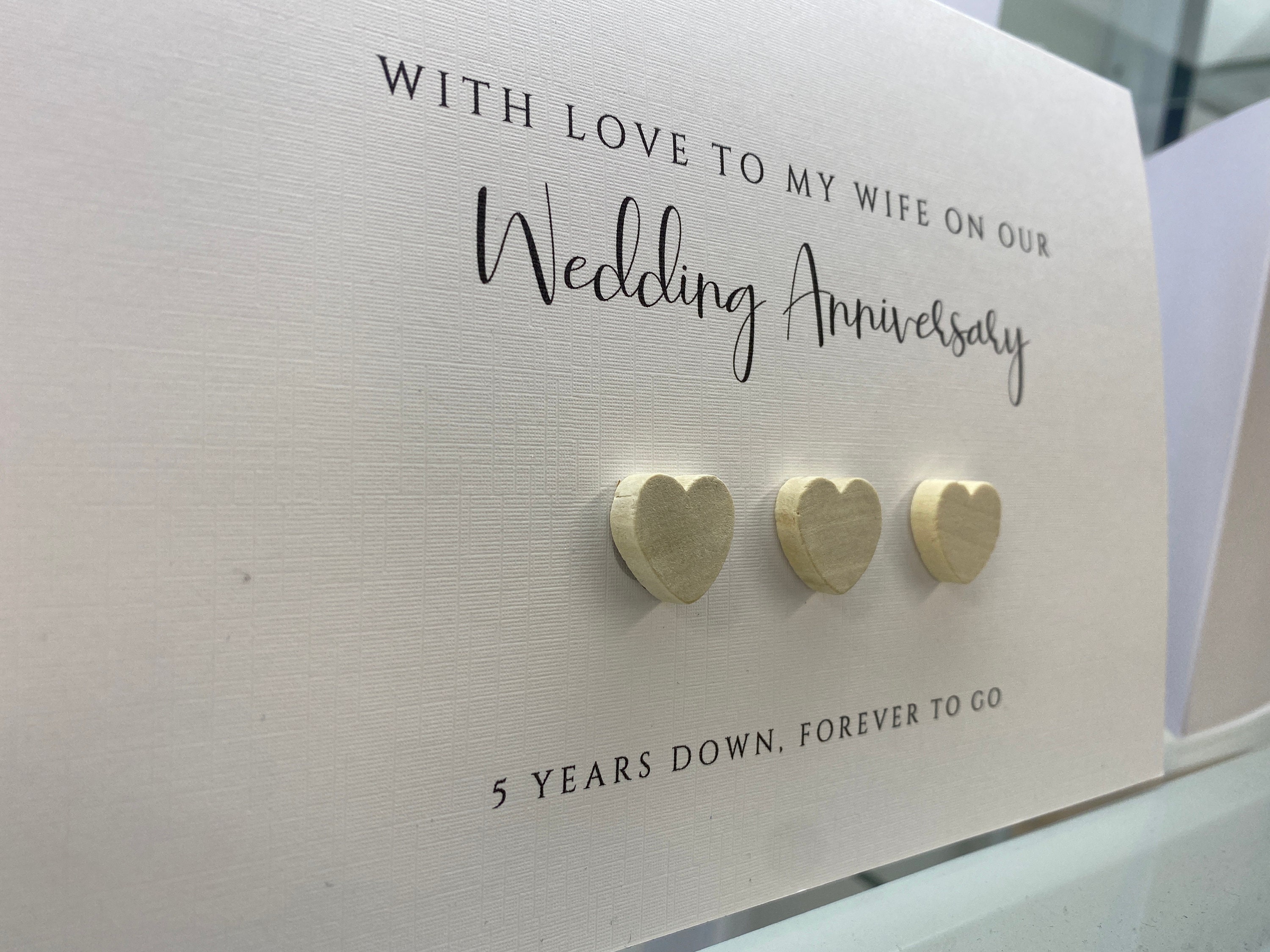 Real Wood Hearts, Wife Fifth Wedding Anniversary Card, Fifth Annive...
