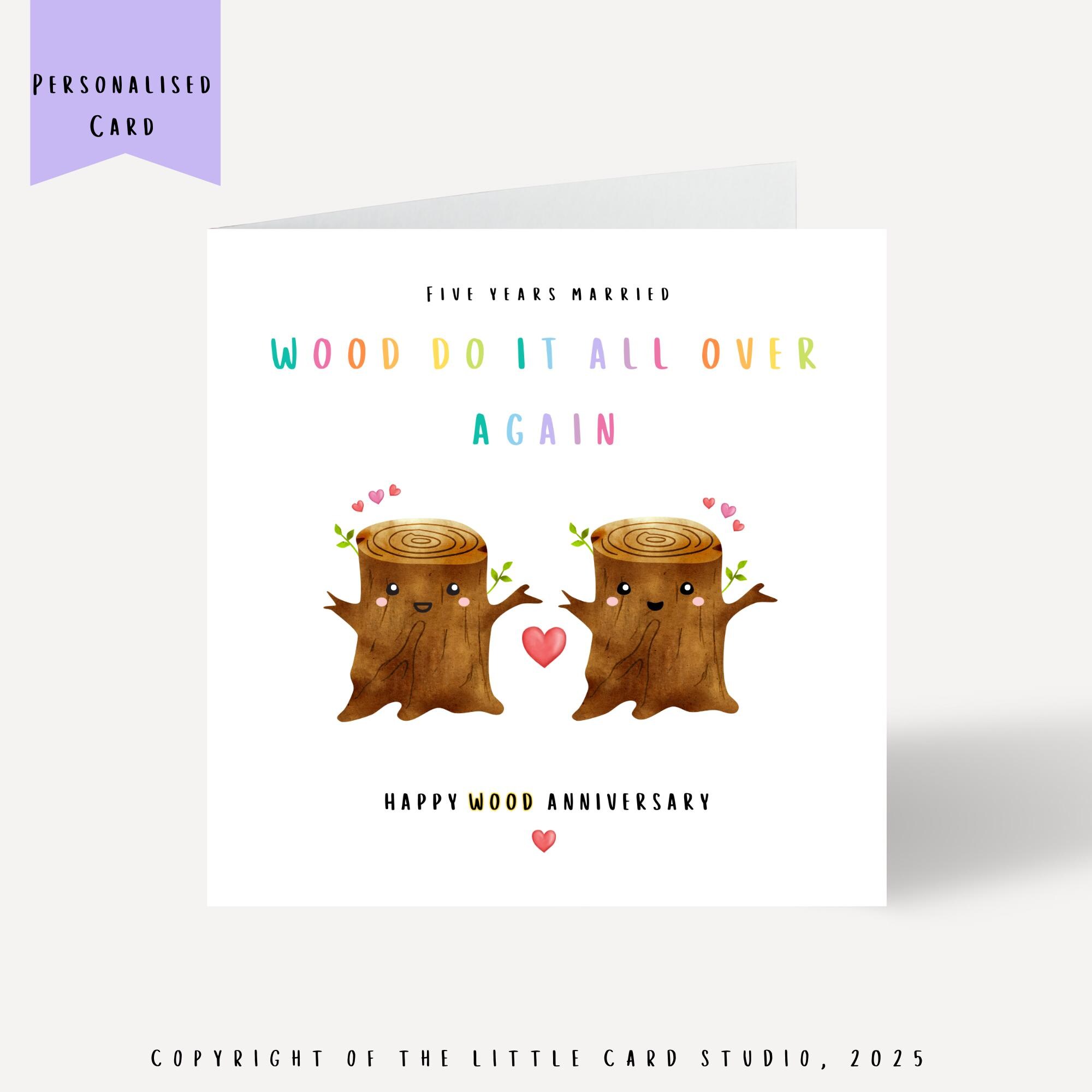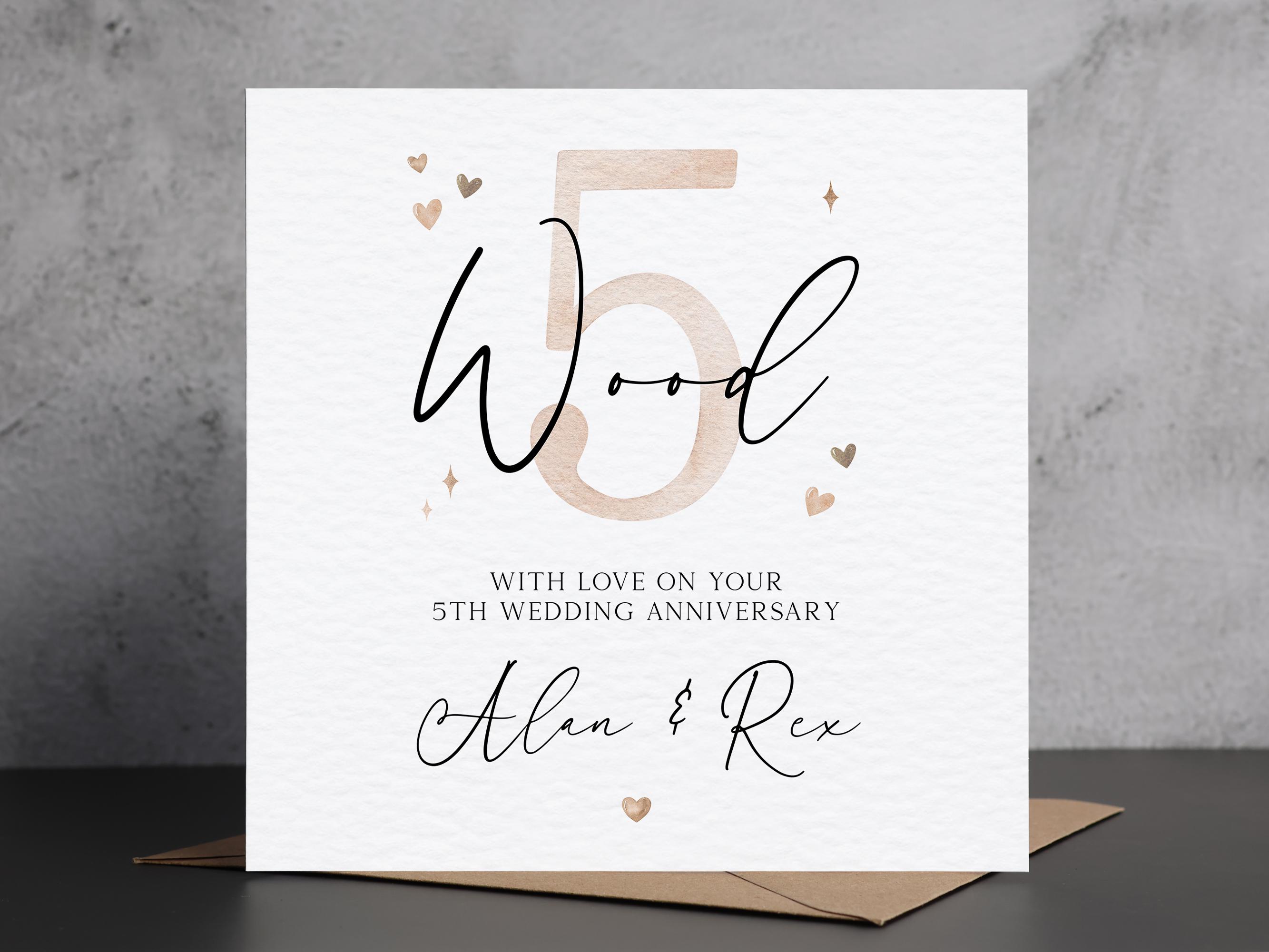 Personalised 5th Wood Wedding Anniversary Card | 5 Years Anniversar...