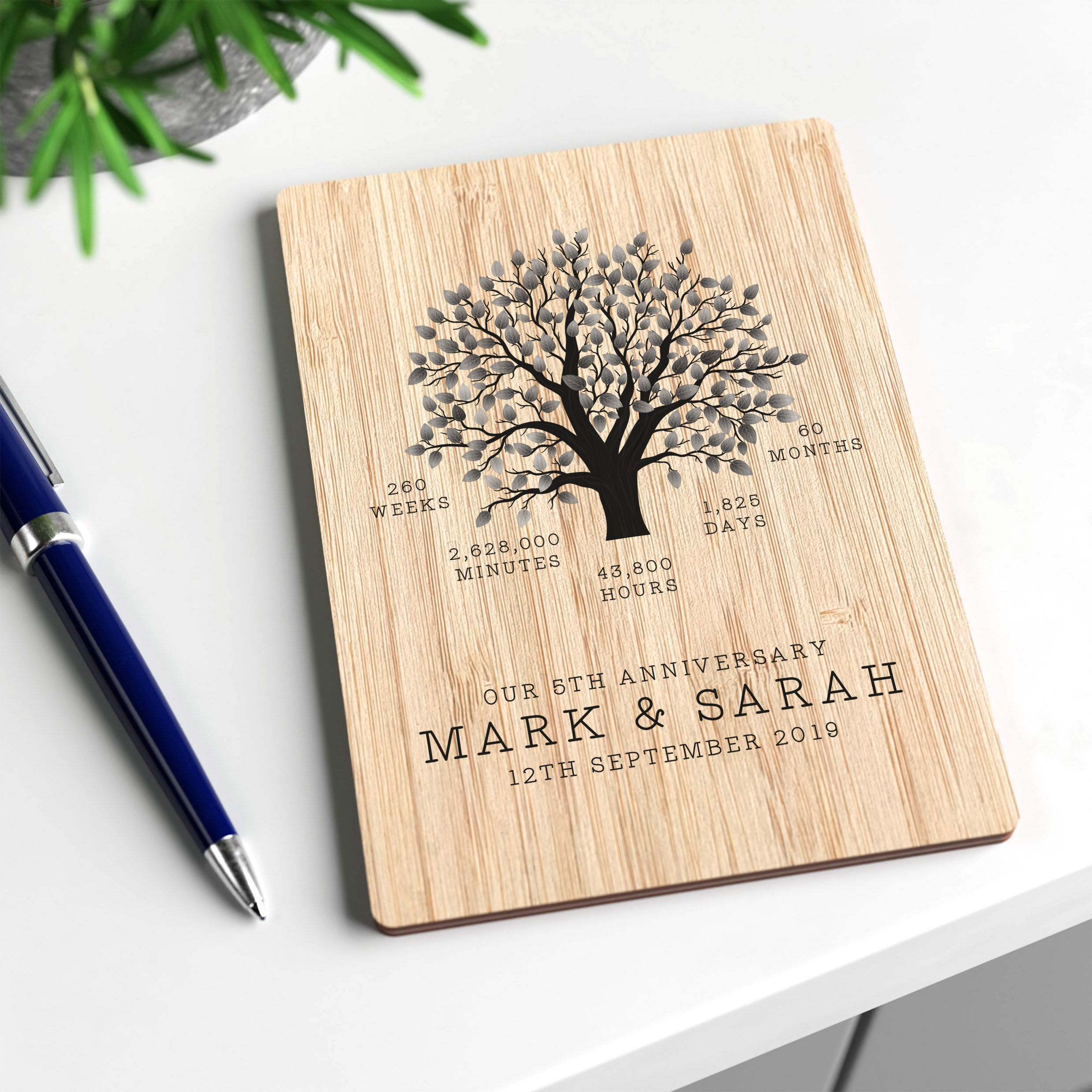 Personalised Wooden 5th Wedding Anniversary Card | Wood Card | Boxe...