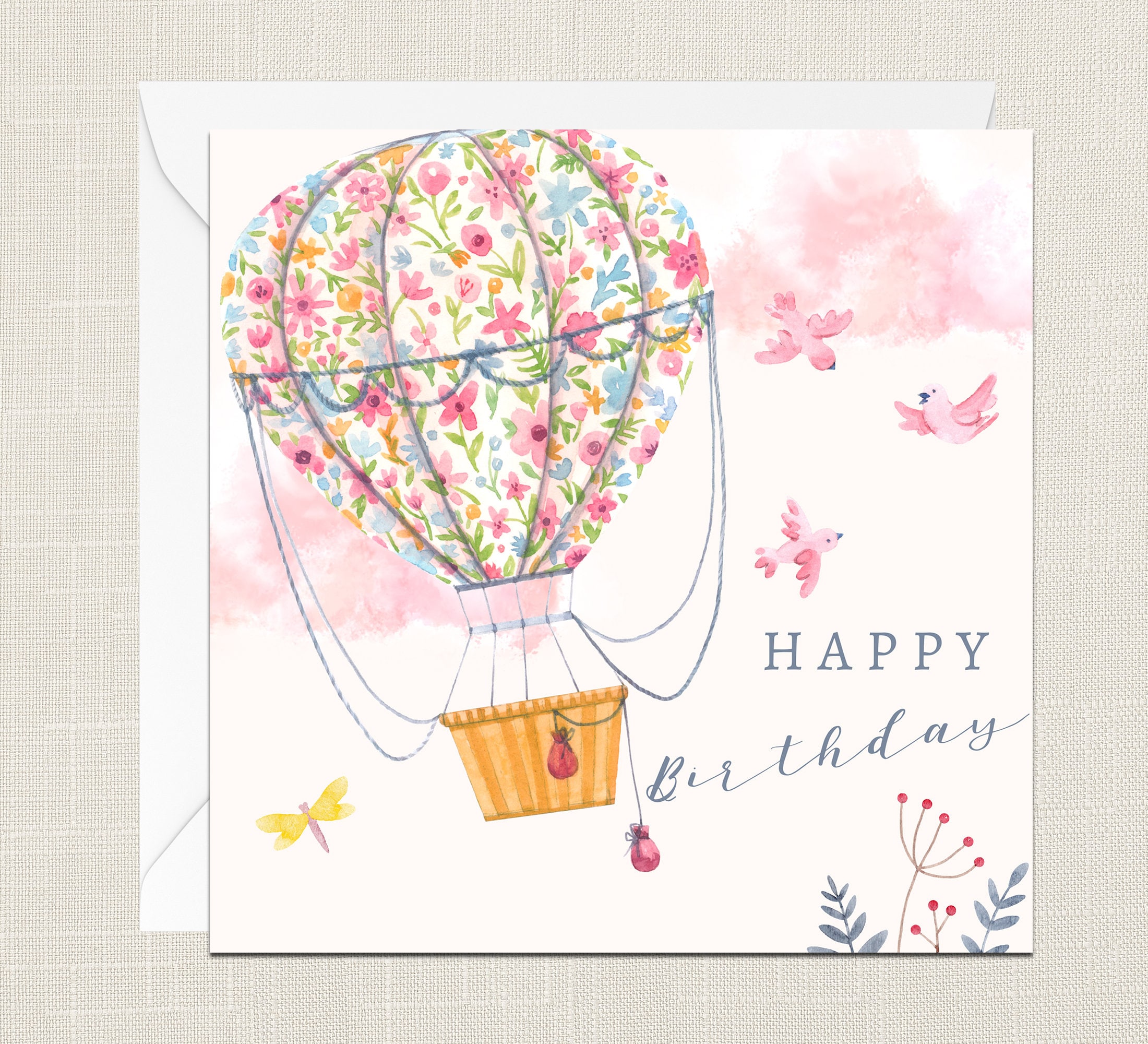 Happy Birthday Personalised Card Female Beautiful And Elegant. Ladies Birthday Balloon Flowers Desig...