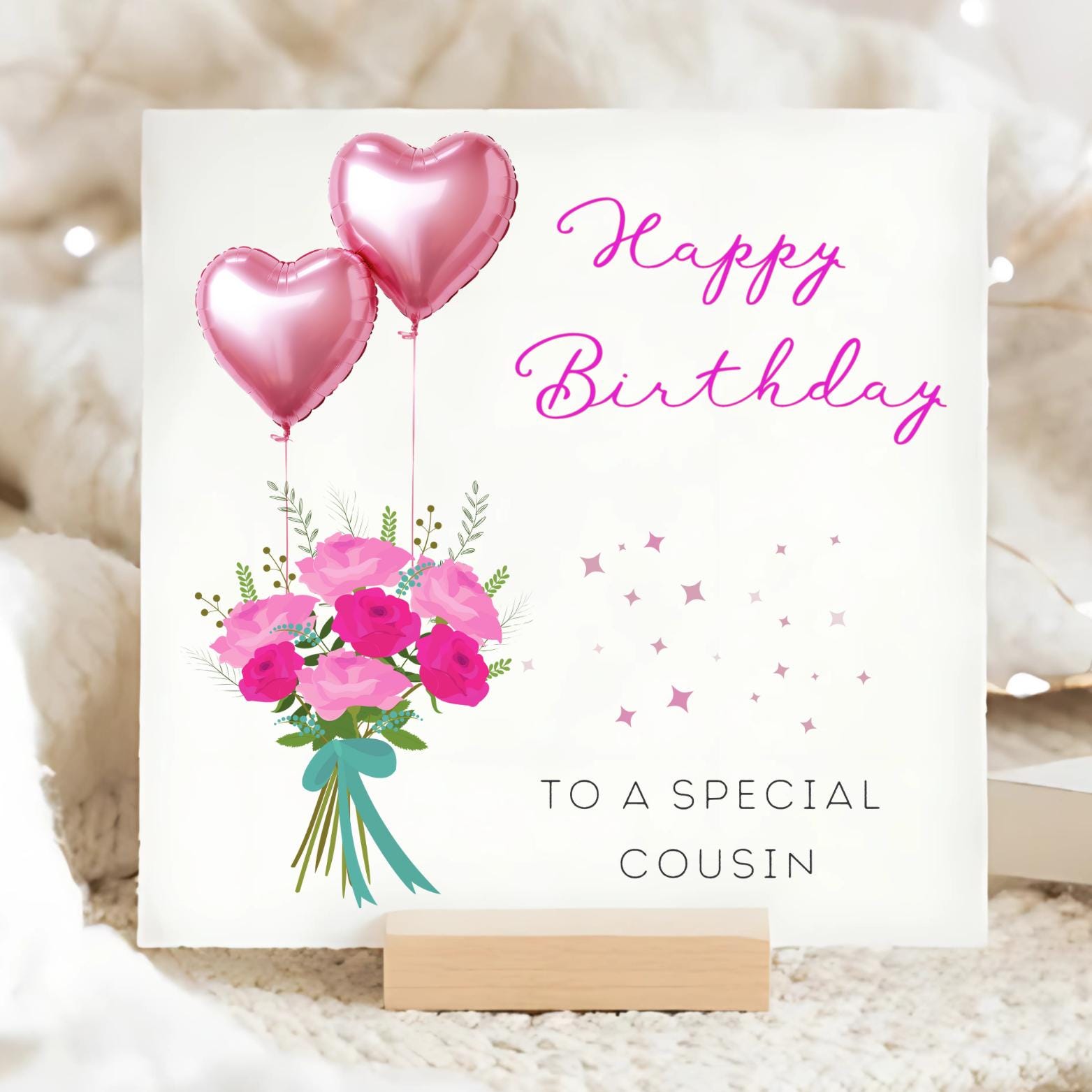 Cousin Pink Birthday Flowers Card, Special Cousin Birthday Gift, Pe...