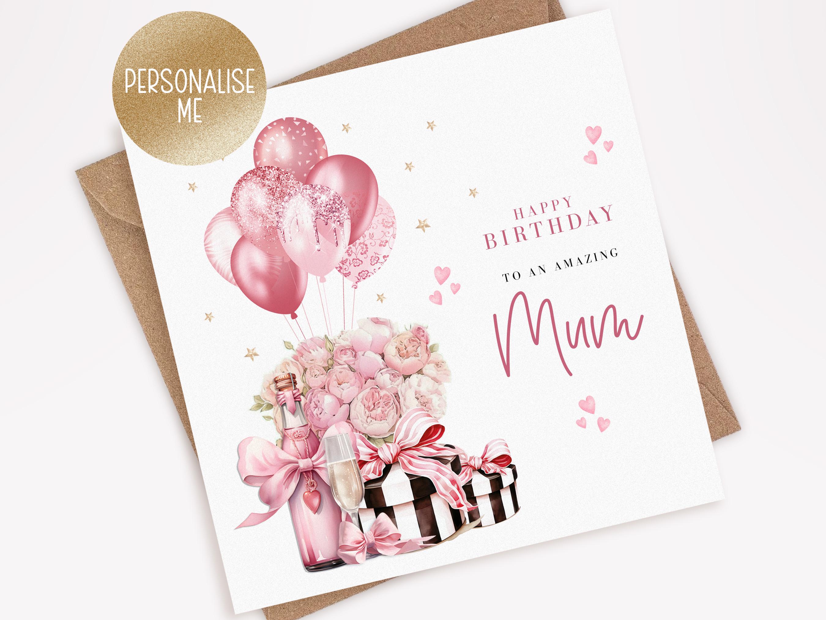 "Mum Birthday Card, Happy Birthday Mum, Special Mum, Wonderful Mum Card, Pink Prosecco, Pink Mu...