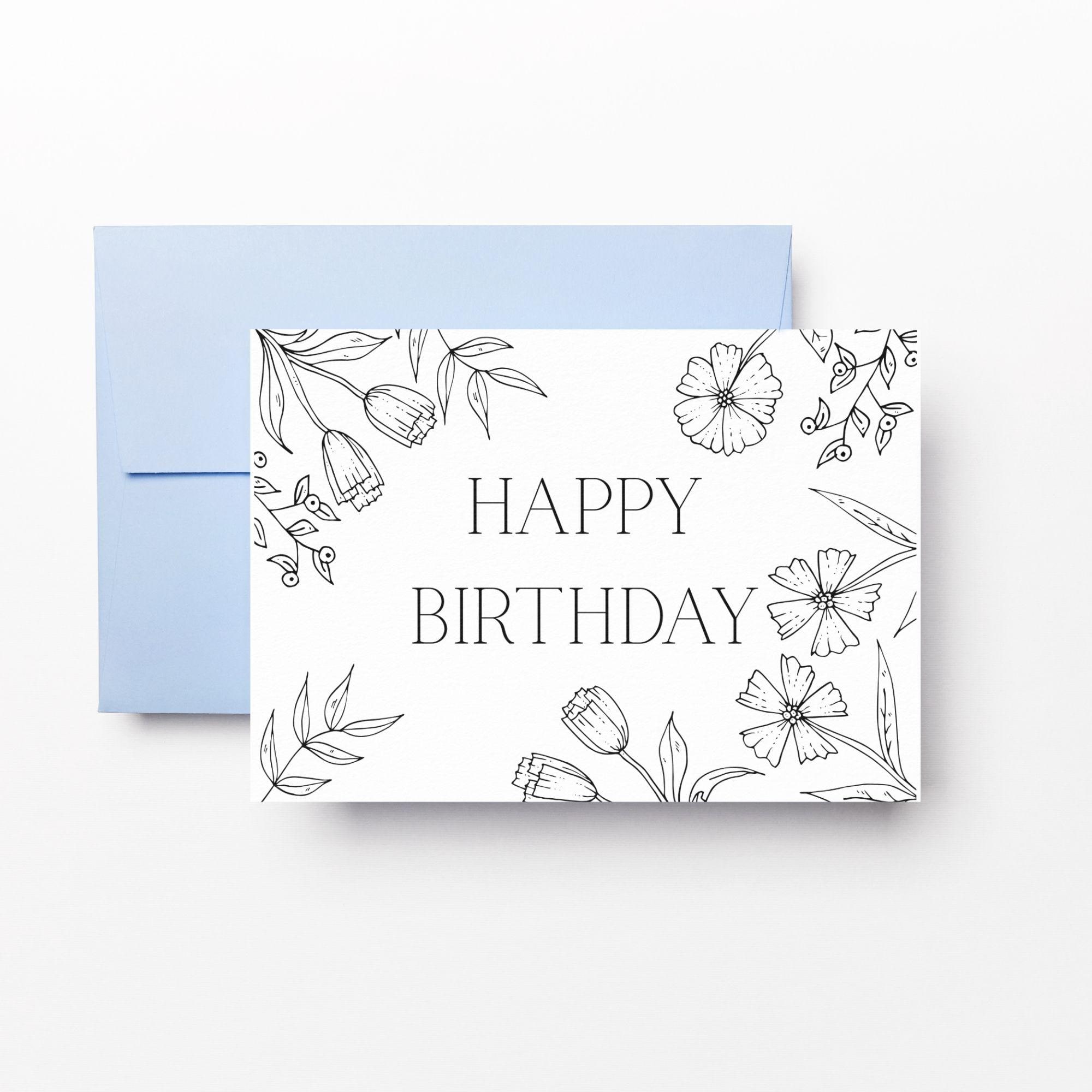 "Floral Black & White Printable Birthday Card - INSTANT DOWNLOAD - DIGITAL PRODUCT Looking ...