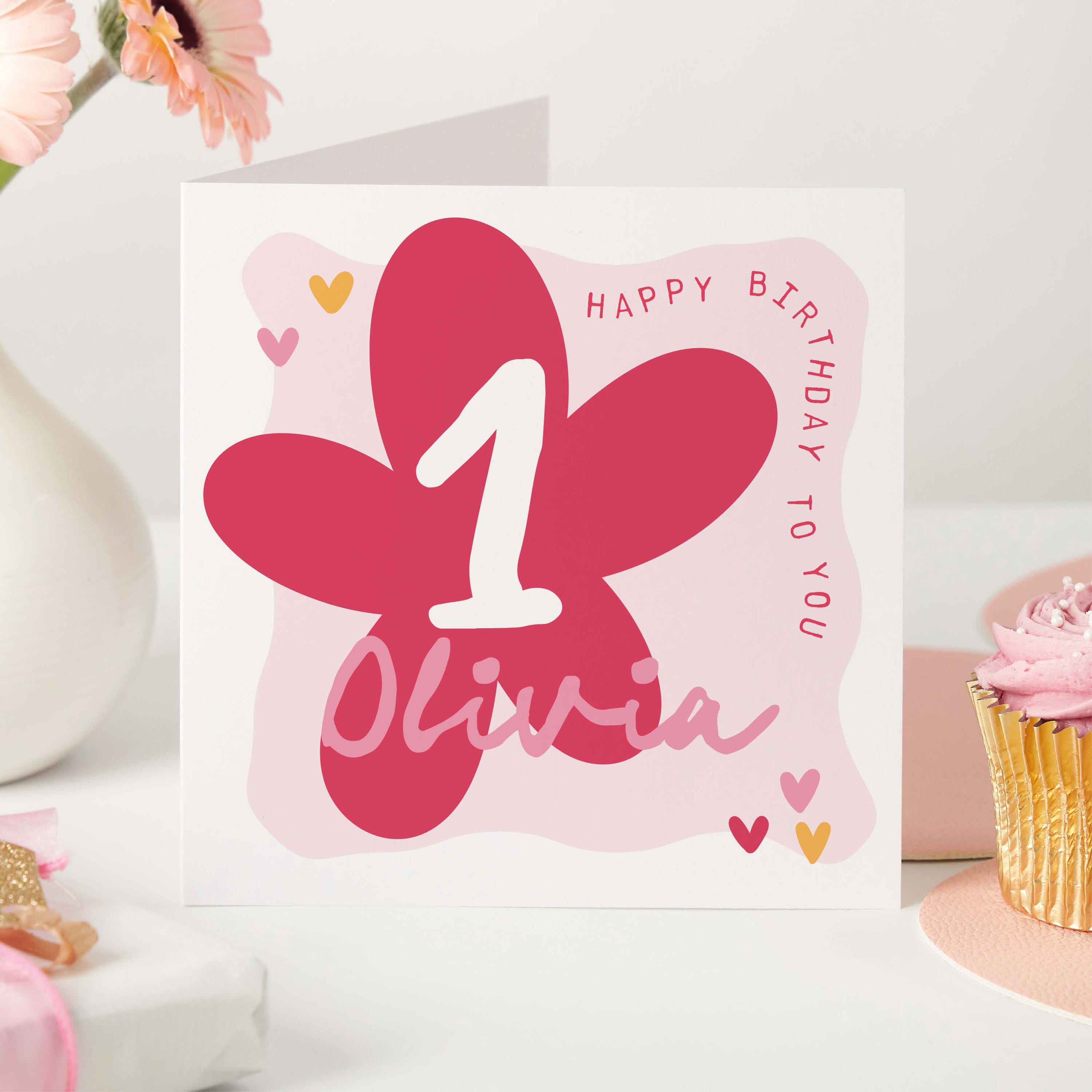 Personalised 1st Birthday Card, 1st Birthday Card Flower Design, Co...
