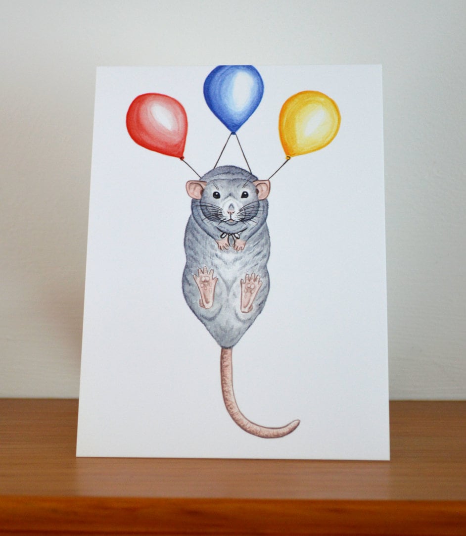 Grey Rat Birthday Card, Dumbo Rat Birthday Card Design, Rat Greetin...