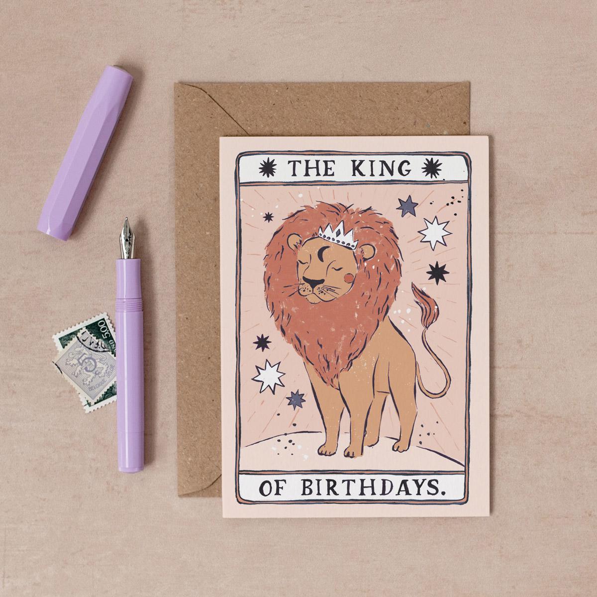 The King of Birthdays card with tarot card style artwork of a proud lion. Perfect birthday card for ...