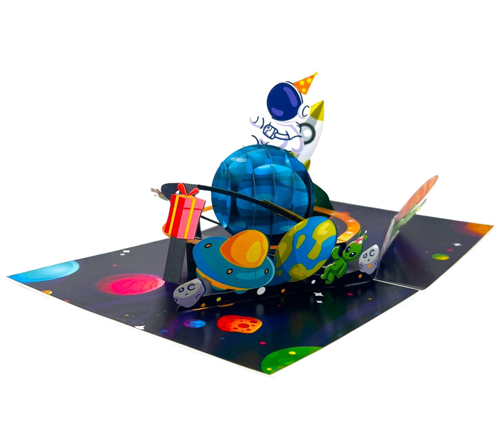 Handmade 3d Pop Up Card Space Astronaut rocket Birthday Party Invit...