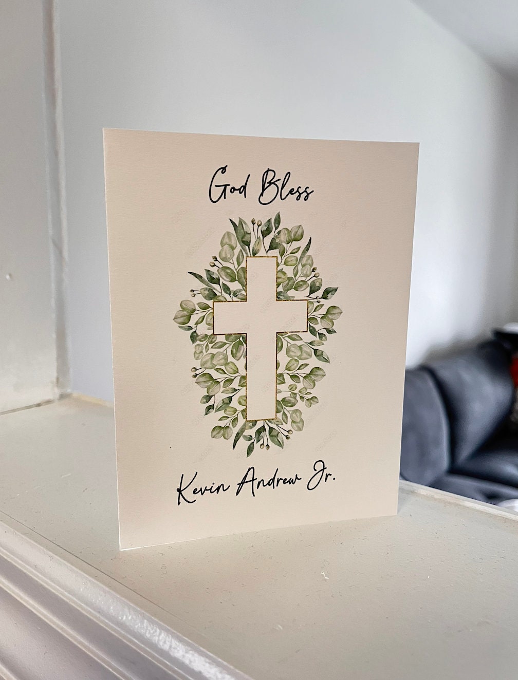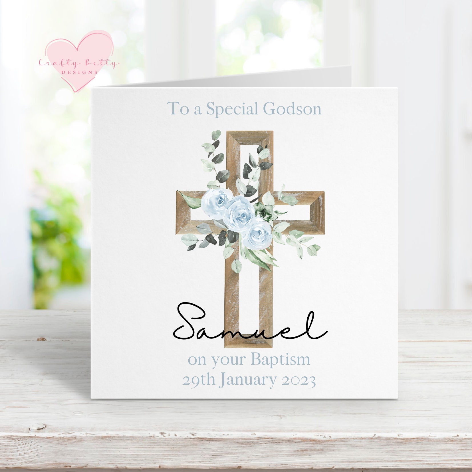Personalised Baptism Card, Baptism Card, Floral Cross Baptism Card, Boys Baptism Card, Religious Bap...