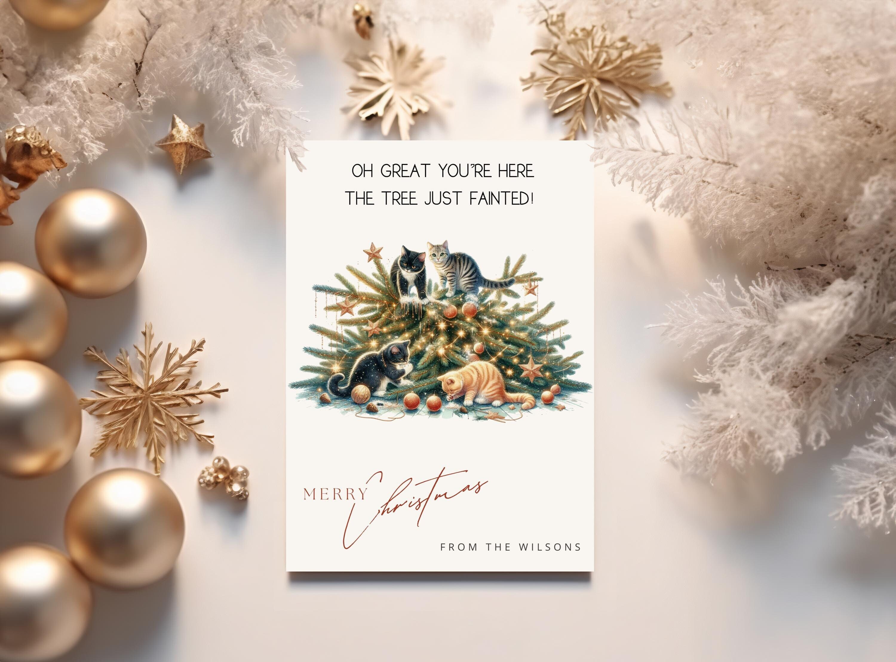 Funny Christmas Card, Christmas Tree Card Cat, The Tree Fainted, Ca...