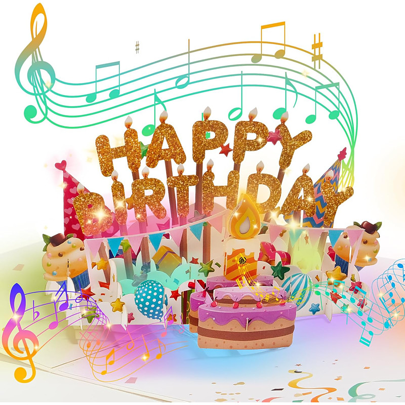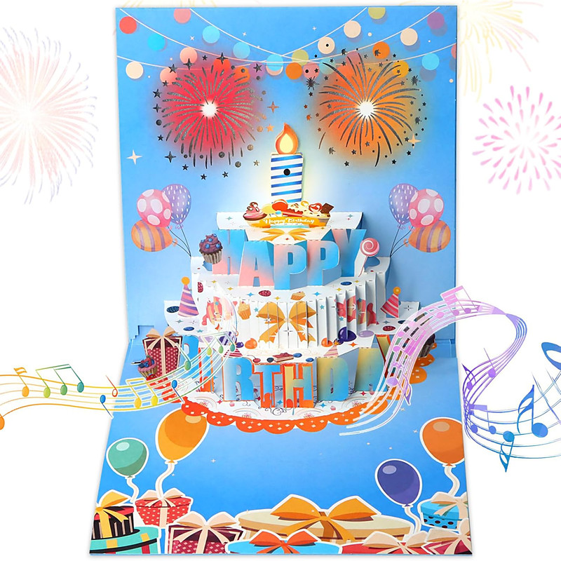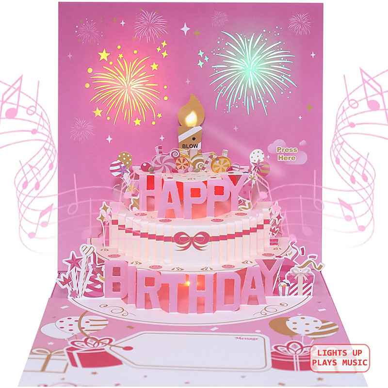 • Birthday Cards Fireworks Pop Up Cake Blowable Light and Music Happy...