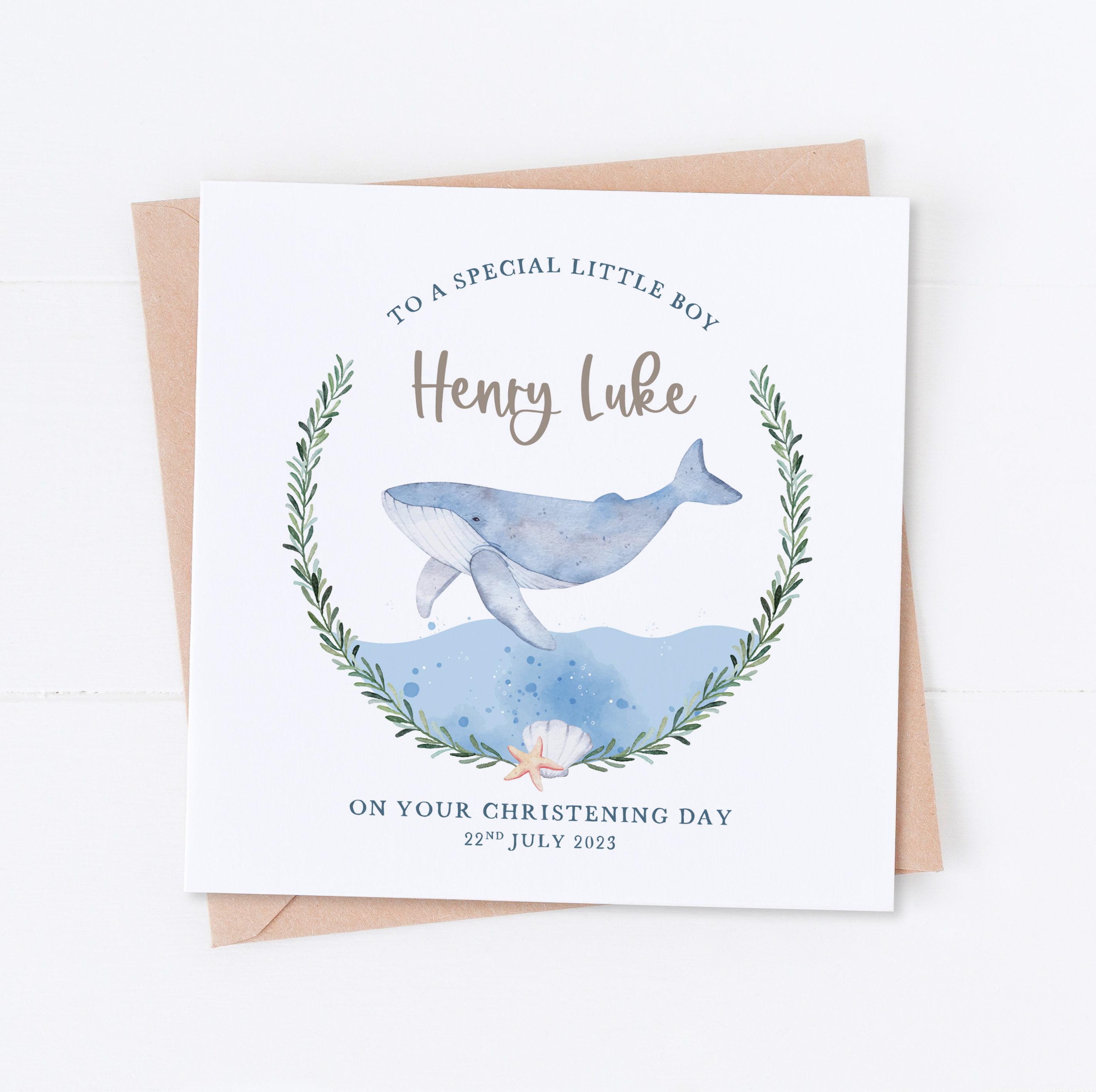 Personalised Whale Christening Card, Baptism Card, Boy Christening ...