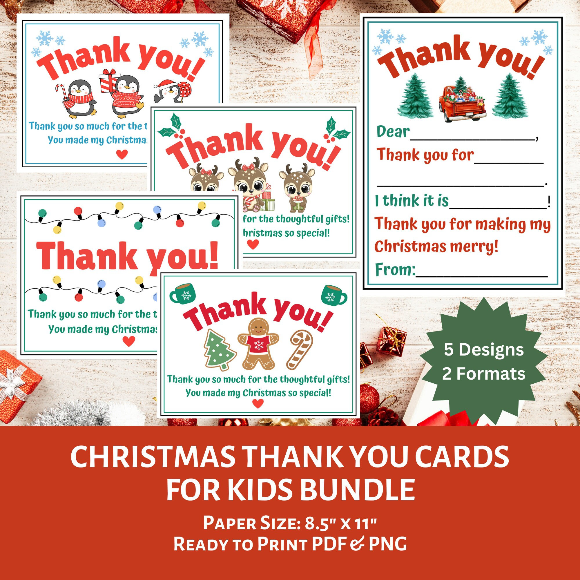 Christmas Thank You Cards for Kids | Fillable Thank You Card | Prin...