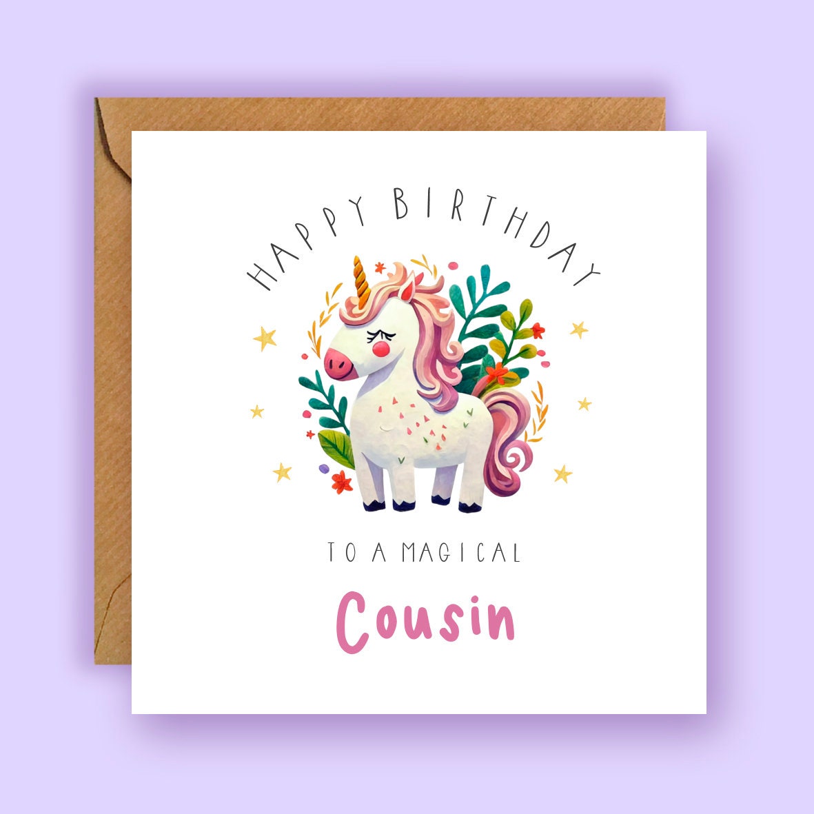 Unicorn Happy Birthday Cousin Card, Unicorn Birthday Card, Cousin B...