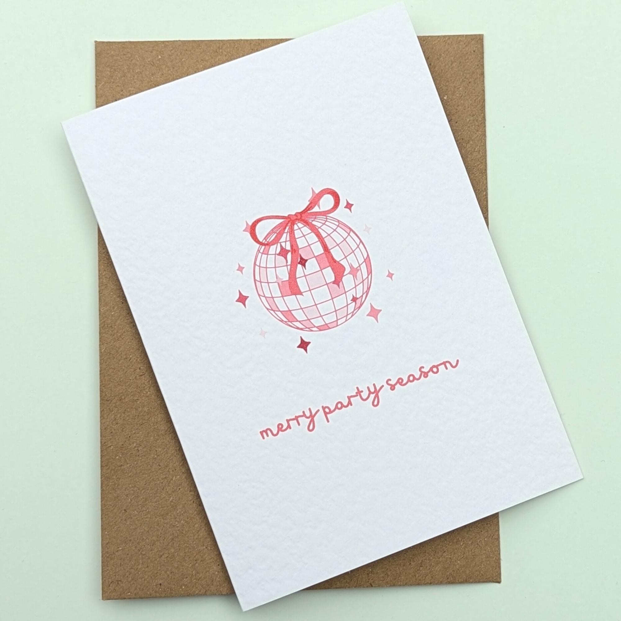 Disco Ball Christmas Card, Coquette Bow Christmas Card, Merry Party...