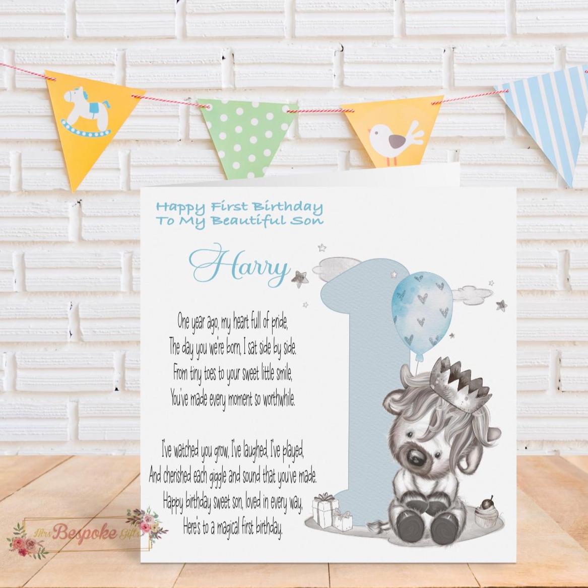son 1st birthday card, personalised first birthday card, 1st birthd...
